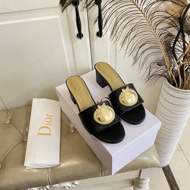 FFF 橡胶底 ,真皮底 ,迪奥Dior中跟拖鞋,跟高5.5Cm,牛皮面,羊皮里,35-42码 DDD