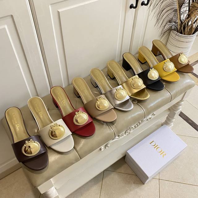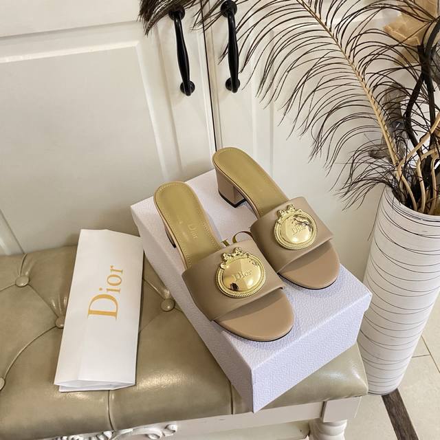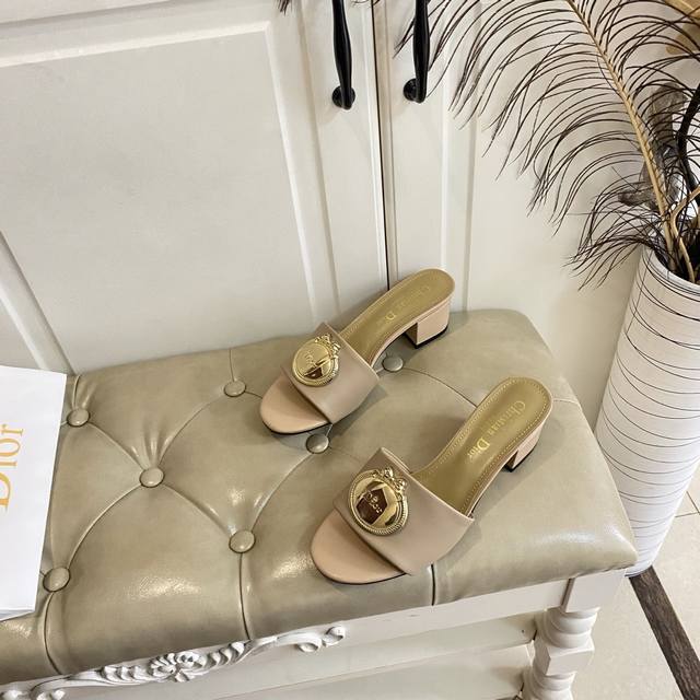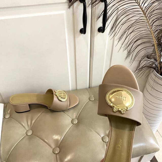 橡胶底 ,真皮底 ,迪奥Dior中跟拖鞋,跟高5.5Cm,牛皮面,羊皮里,35-42码 DDD