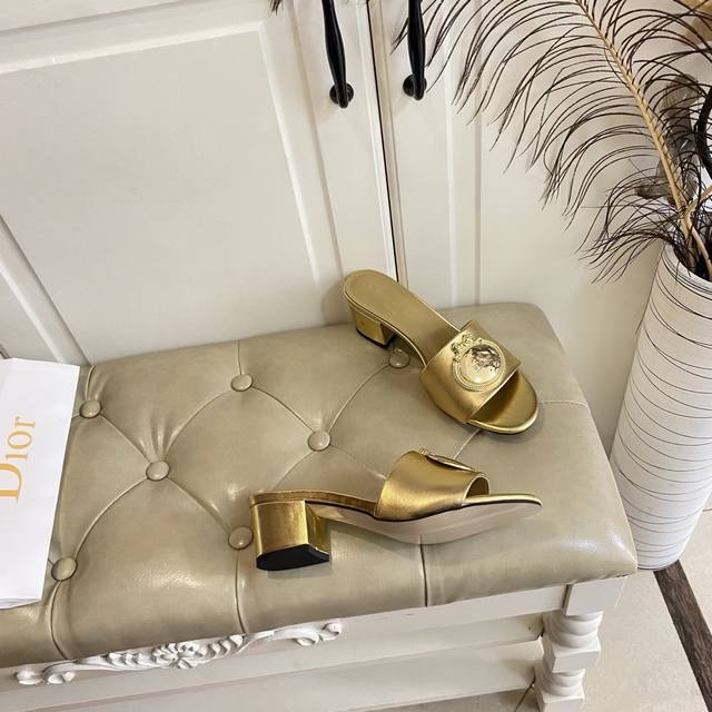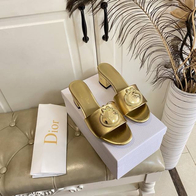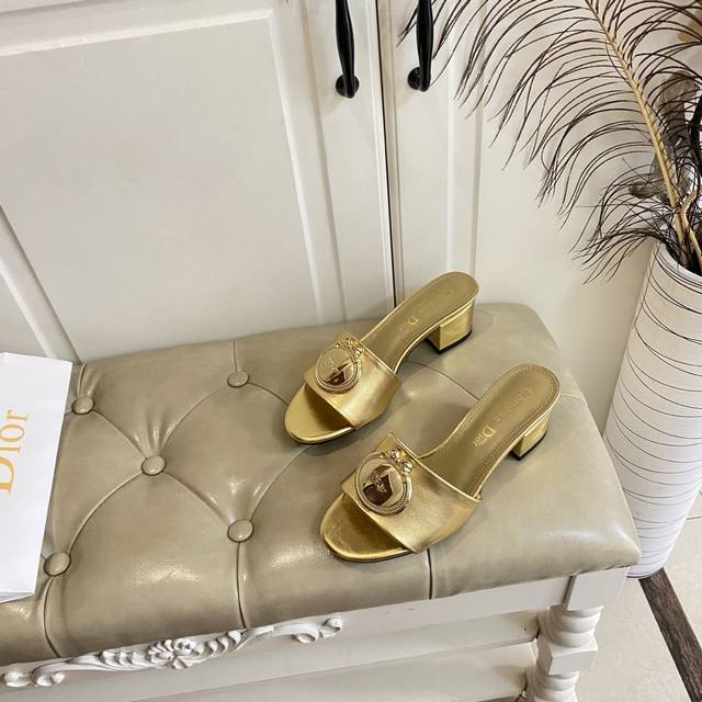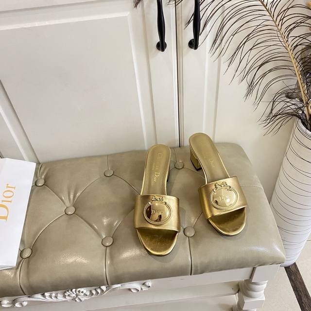 橡胶底 ,真皮底 ,迪奥Dior中跟拖鞋,跟高5.5Cm,牛皮面,羊皮里,35-42码 DDD