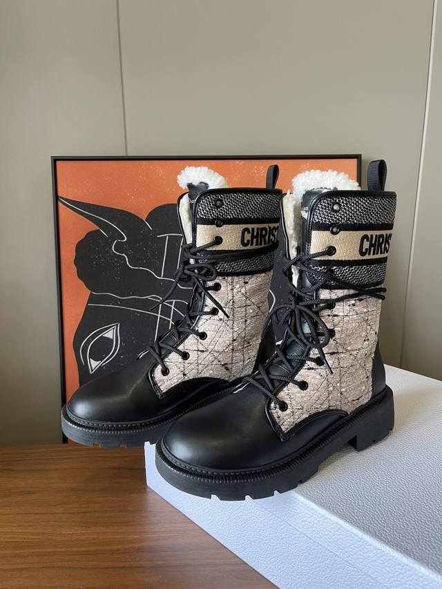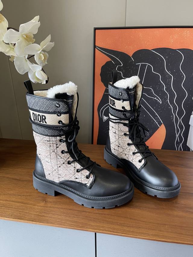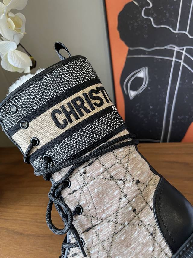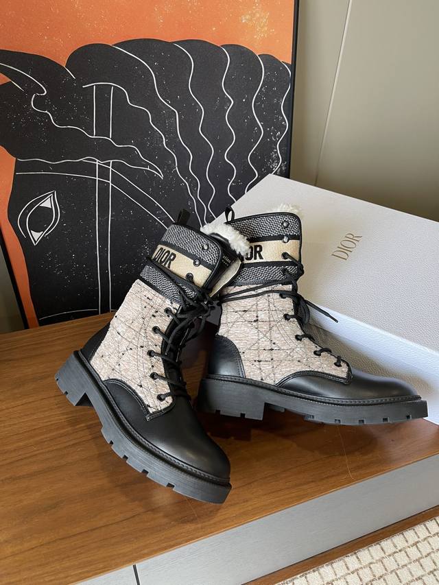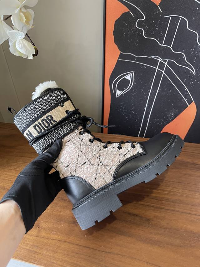 毛里 皮里 Dior**经典刺绣羊毛短靴 牛面拼织物 羊毛里橡胶底 Size35 36 37 38 39 定40 41 不退换