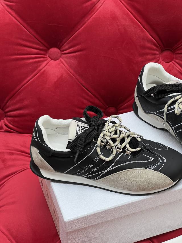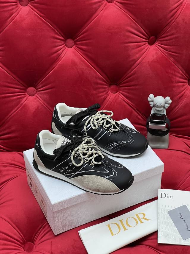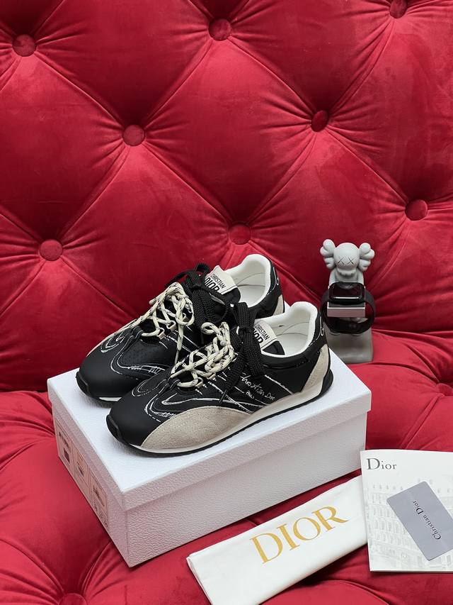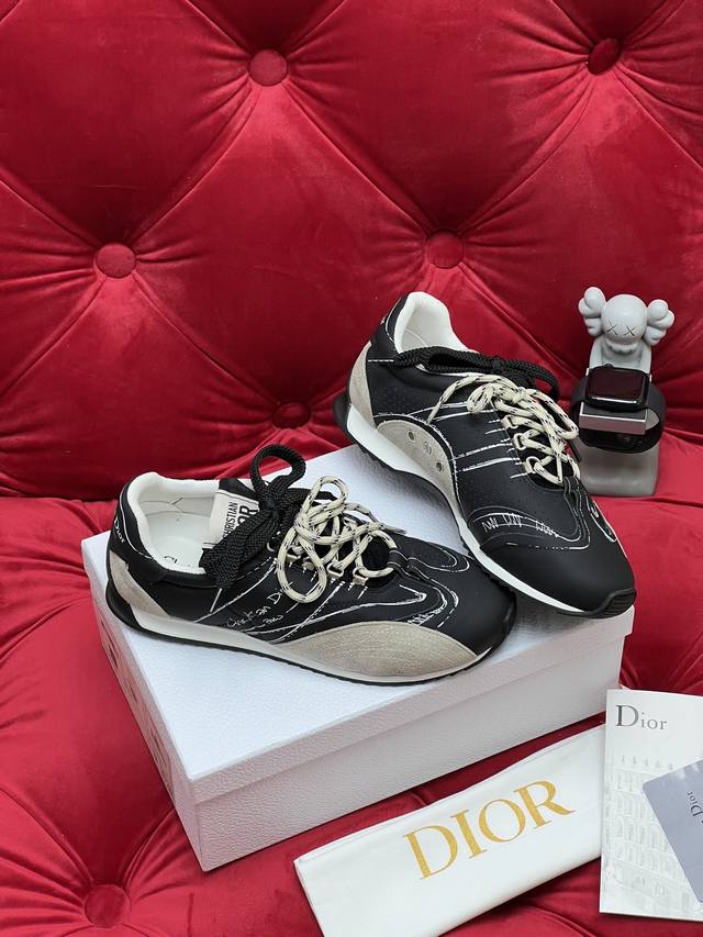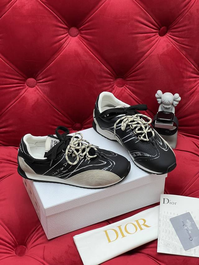 独家实拍 顶级版本 情侣款 Dior迪奥 25Ss最新D-Sketch 涂鸦 休闲 运动鞋 春夏成衣系列发布秀精彩亮相 彰显经典的复古美学 侧面饰以手写风格的Christian Dior paris标志 鞋跟和鞋舌点缀以Christian Dior paris标志镶片和标牌 DDD 面料: 牛皮 尼龙拼接 DDD 内里: 原版透气网 DDD 大底: 原版双色橡胶底 DDD Size:35-45 女40.41订做 男款45订做不退换 DDD