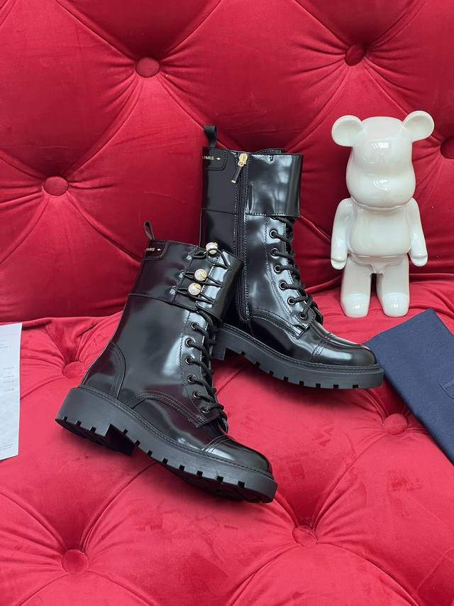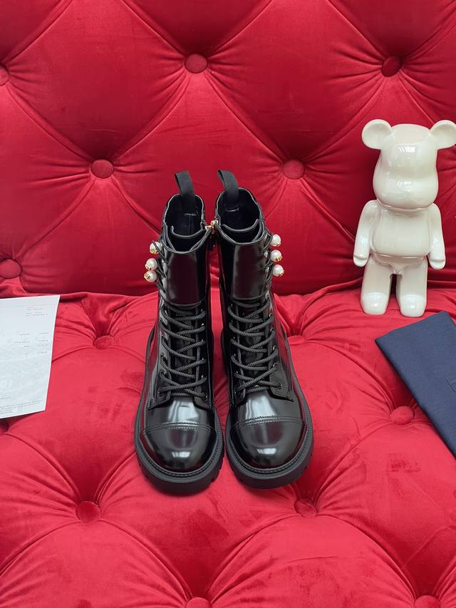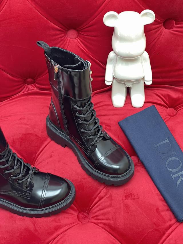 独家实拍 顶级版本 # 迪奥 Ss秋冬走秀海报新款高定系列珍珠魔术贴机车女短靴 Dioranger字母Logo马丁靴 低跟圆头系带骑士军靴 DDD 鞋面:进口小牛皮 珠光皮 DDD 内里:水染牛皮内里垫脚 DDD 鞋底:Tpu大底 DDD Size:35-40 40定做不退换 DDD