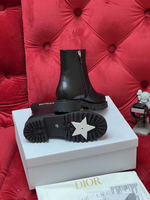 / 独家实拍 顶级版本 Dior 迪奥2026Ss秋冬新款D-Quest系列朋克风藤格纹电绣女靴 明星同款Cd字母Logo五金皮带扣机车靴 低跟厚底圆头一脚蹬骑士中