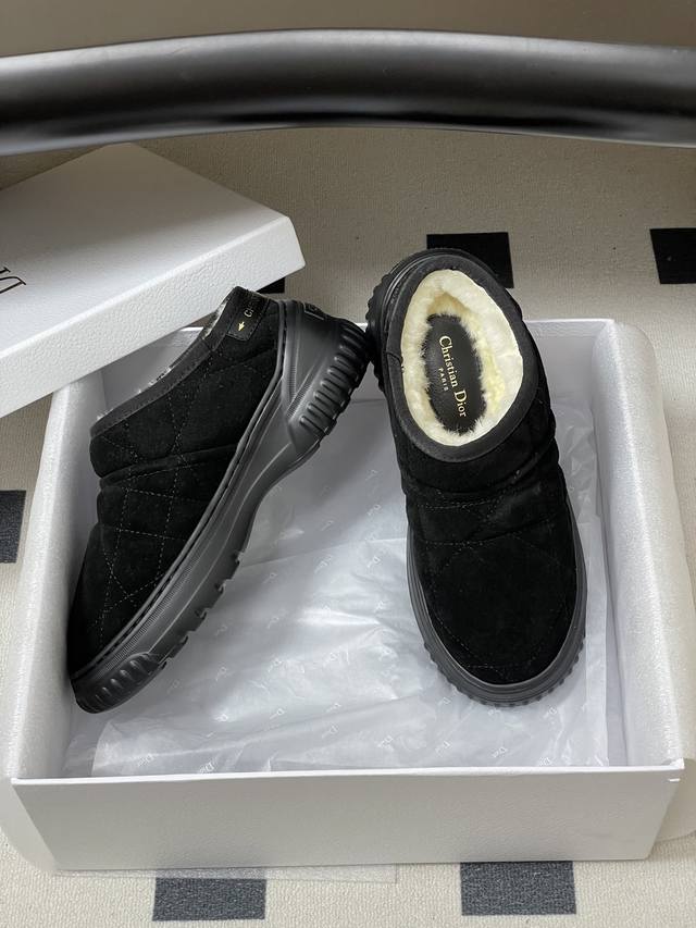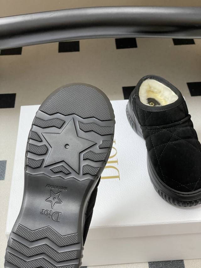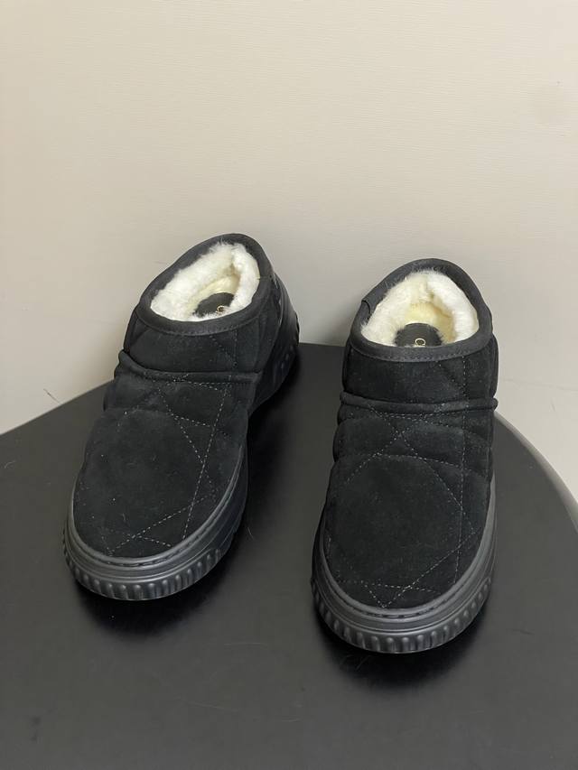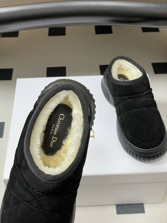 矮帮 -短靴 - DDD Dior Frost 及踝靴藤格纹羊皮毛一体短靴毛毛鞋雪地靴 DDD 这款 Dior Frost 及踝靴融入高订风格,重新诠释雪地靴款式。采用驼色绒面革等材质精心制作,饰以藤格纹图案,米白色羊皮革皮毛一体内部打造舒适穿着体验。后侧饰以同色调皮革镶片,点缀以金色调 Christian Dior paris 标志,轻盈的橡胶鞋底饰以徽标,舒适之余更添精致。 DDD 鞋面:牛反绒 DDD 内里垫脚:羊毛 DDD 鞋底:开模橡胶大底 DDD 码数:35-39 40.41定做不退换 DDD