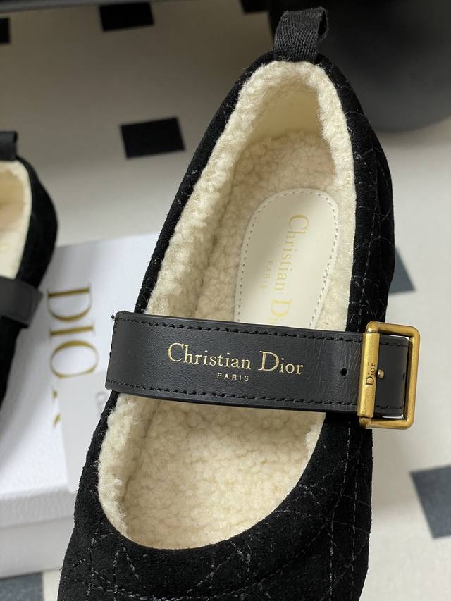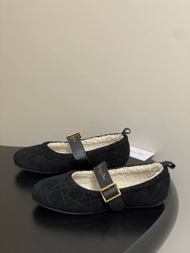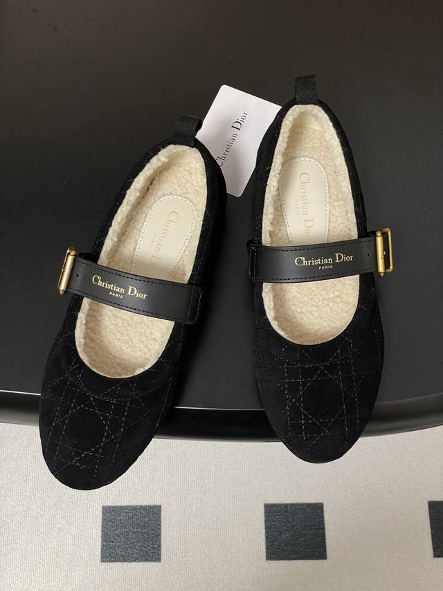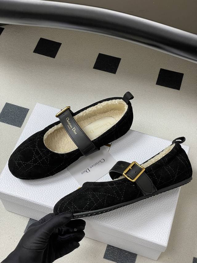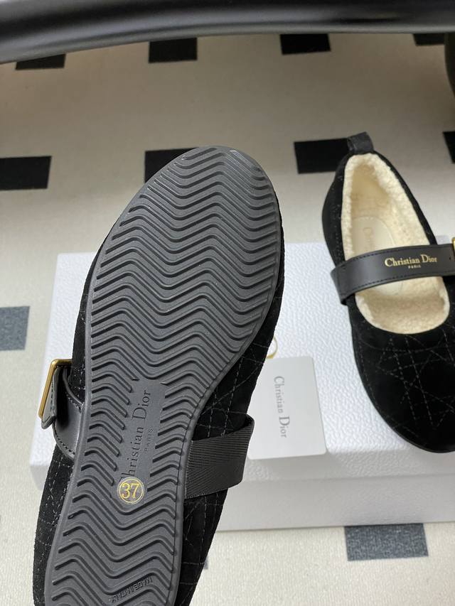 跑量版本 下单备注 DDD 25Ss秋冬新款Dior 迪奥Dioralps Dior Frost羊毛芭蕾鞋Cd字母皮带扣玛丽珍平底藤格纹麂皮绒面芭蕾舞鞋毛毛单鞋 DDD 这款 Dior Frost 芭蕾鞋来自Dioralps限定系列,优雅舒适。黑色绒面牛皮革鞋面饰以藤格纹图案,白色羊皮革皮毛一体里料可打造舒适的穿着体验。可调节黑色牛皮革饰带点缀以金色饰面 DDD Christian Dior paris标志搭扣,搭配凹口橡胶鞋底更显精致。可与其他 Dioralps 单品搭配。 DDD 鞋面:定制牛反绒 D