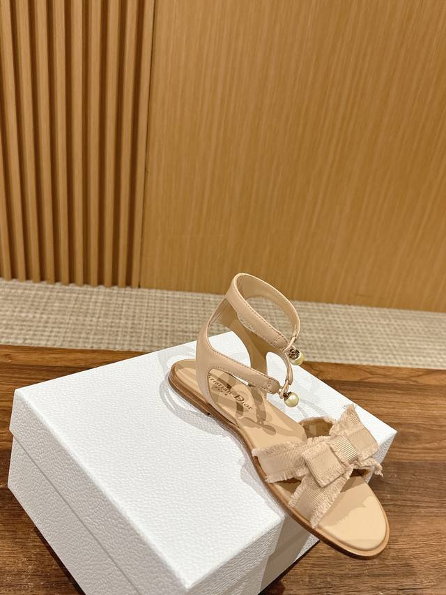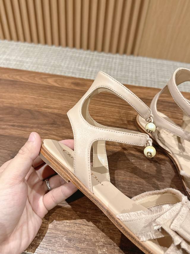 这款Adiorable 凉鞋是二零二四春夏成衣系列新品,时尚优雅。黑色 裸色流苏罗缎鞋面,正面饰以解构效果蝴蝶结,搭配同色调牛皮革系带点缀脚踝处,饰以两颗白色树脂珠饰和 Cd 标志。可与本季各式单品搭配,打造高雅造型。