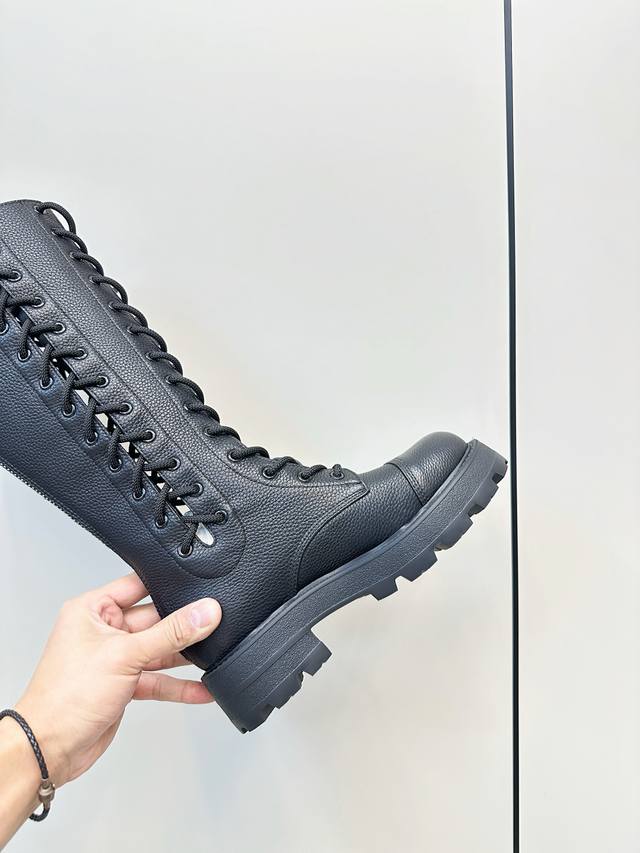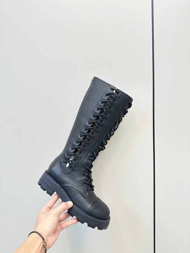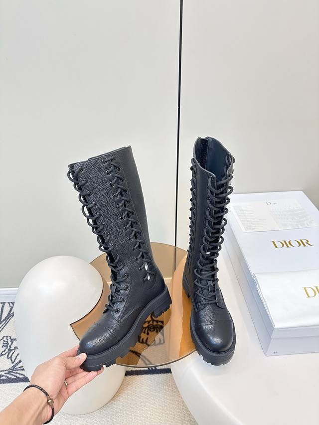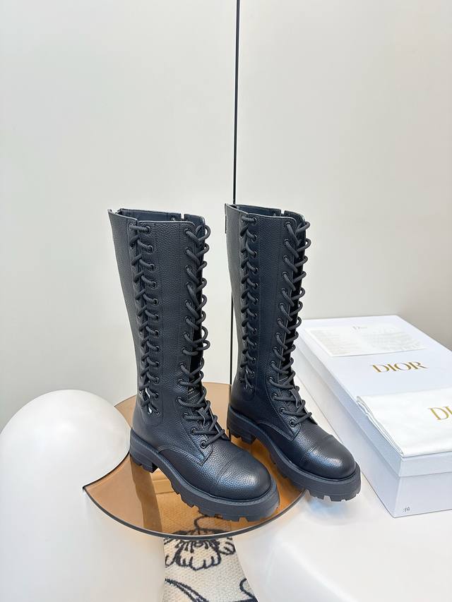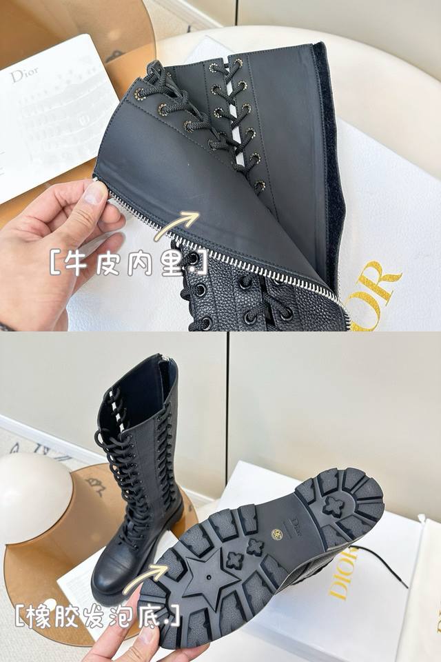 迪奥迪丽热巴 同款D-Road 靴 绑带马丁靴 中筒机车靴 金智秀Jisoo巴黎时尚展首秀 D-Road 靴 镂空的设计、麻绳绑带 可调节至各种脚型! 短靴的跟高设计巧妙,既有着恰到好处的增高效果,又能保证行走时的稳健与自在。无论是搭配简约的牛仔裤打造日常出街造型,还是与优雅的裙装组合出席重要场合,它都能轻松驾驭,完美诠释时尚百搭的真谛。 鞋面粒面小牛皮 内里牛皮垫脚牛皮 原版开模橡胶发泡底 Size:35-40 [40.41订做]