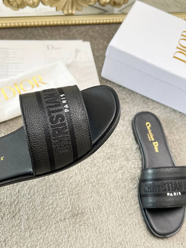 迪奥 字母Dway立体金属光泽線刺绣半拖!2025全新升级 对版专柜新色新楦型 .色彩斑澜漂亮一夏天 最新搭配方形鞋头彰显时髦风范 3D立体金属高密度刺绣,精致