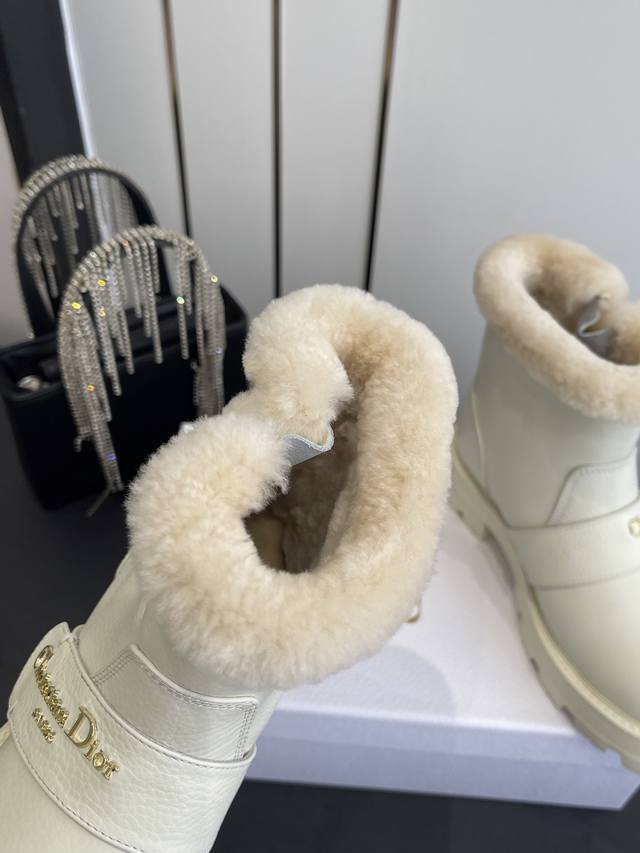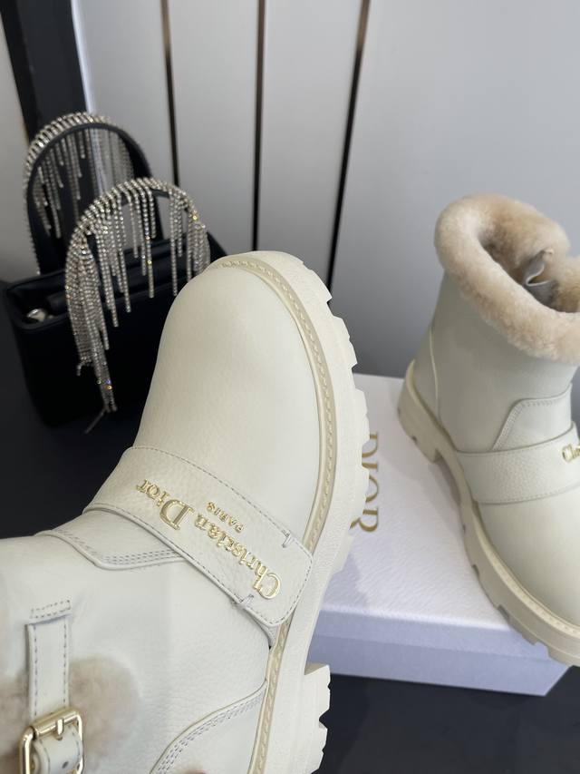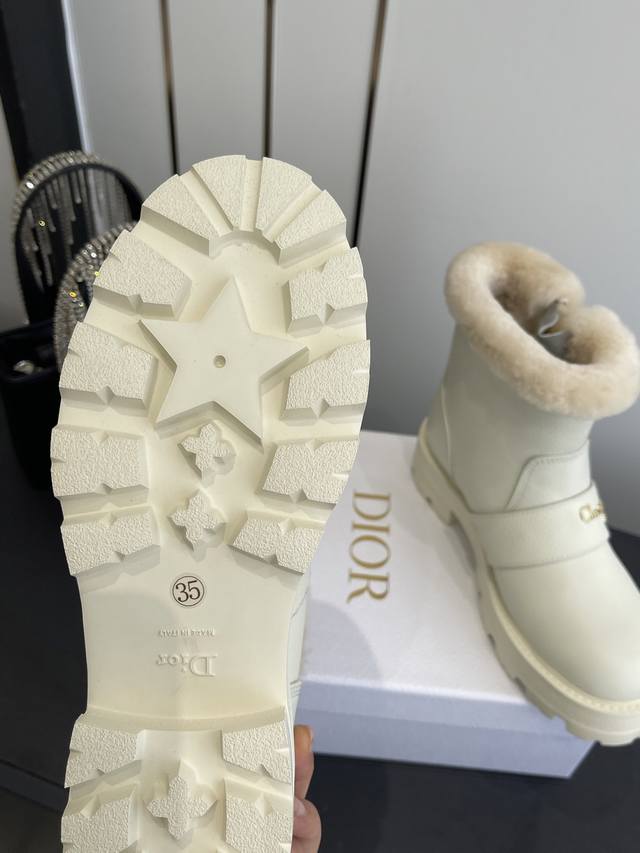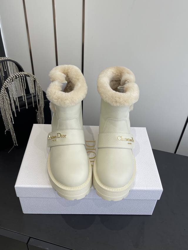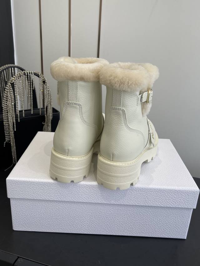/ 迪奥 秋冬新品跑量 加厚保暖羊毛短靴,经久不衰的马丁靴造型,彰显经典设计 顶级品质 侧面带有Dior金色五金Logo标志,完美无瑕。 顶级进口小牛皮材料 内里垫