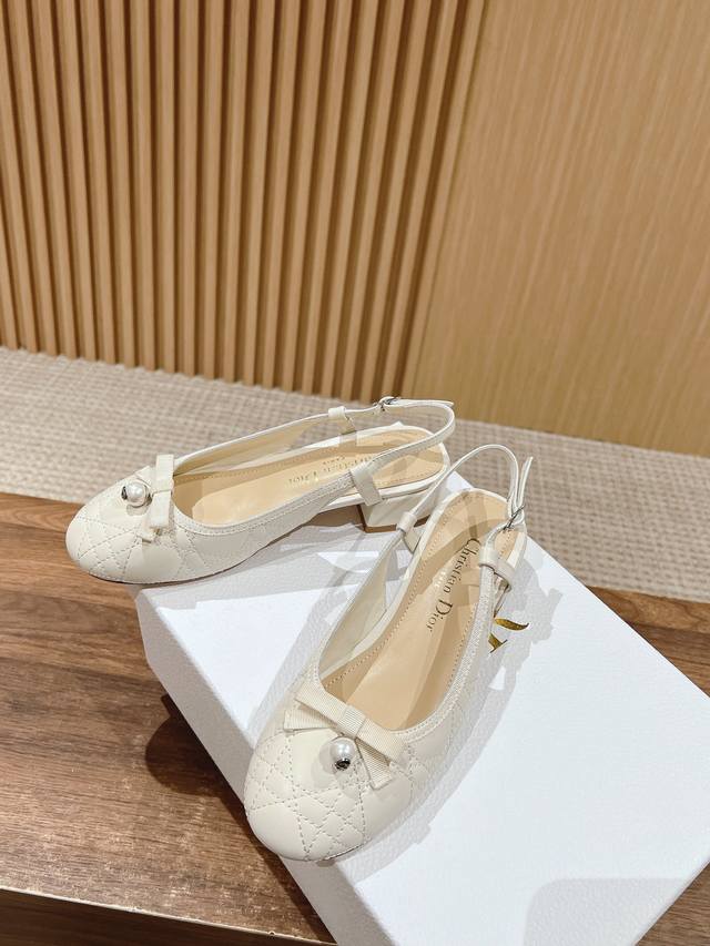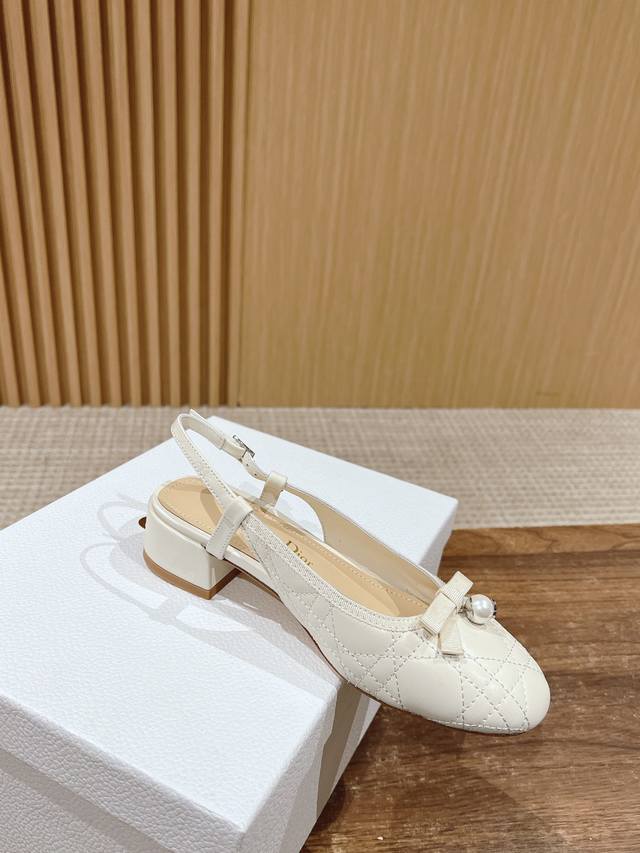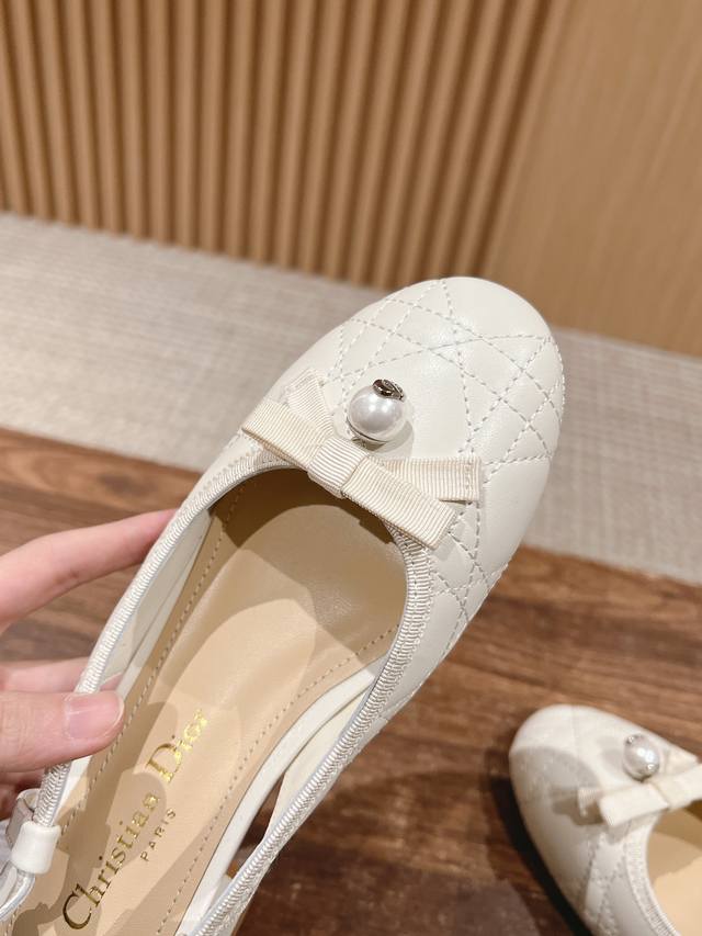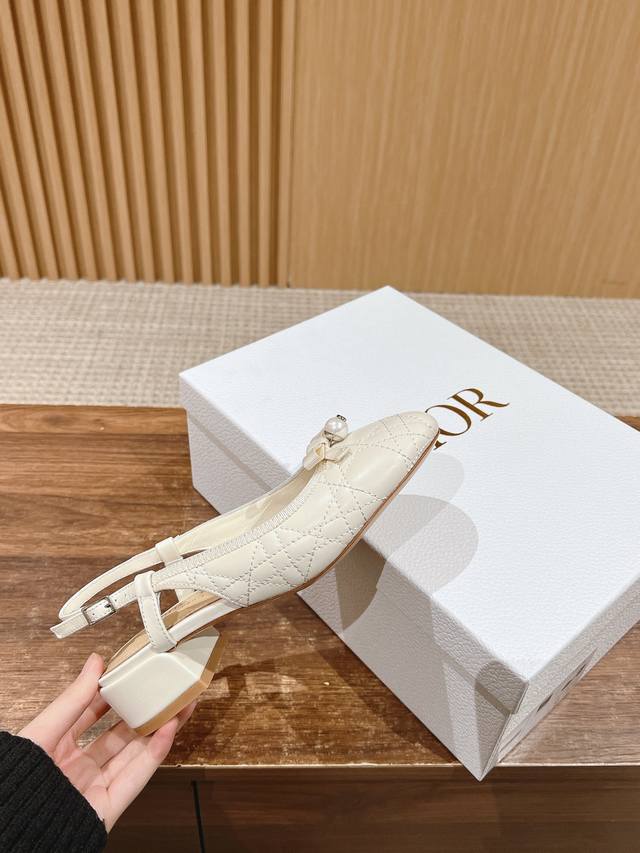 迪奥2025春夏新款珍珠凉鞋 小羊皮鞋面,做经典菱格刺绣,搭配小珍珠,还有女人味的单品 羊皮内里,牛皮鞋底