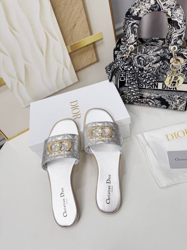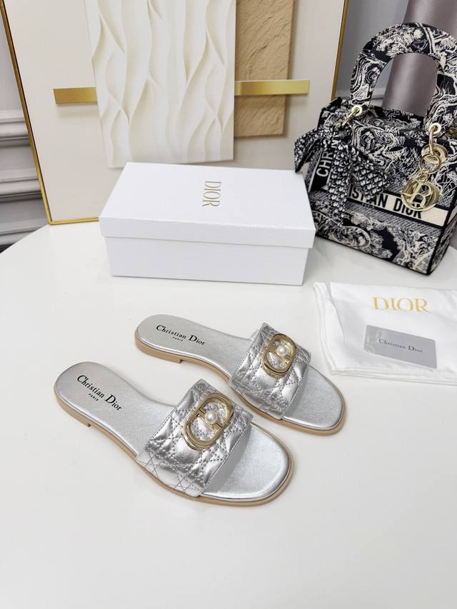 迪奥2026早春拖鞋:电绣工艺+珍珠五金饰扣。35-43 35不退换货 像胶底 。真皮底 DDD