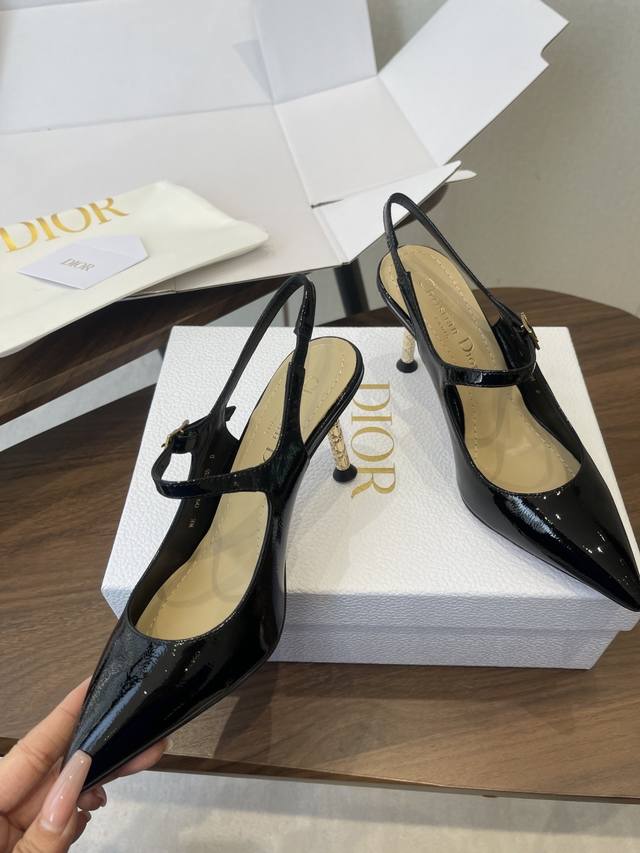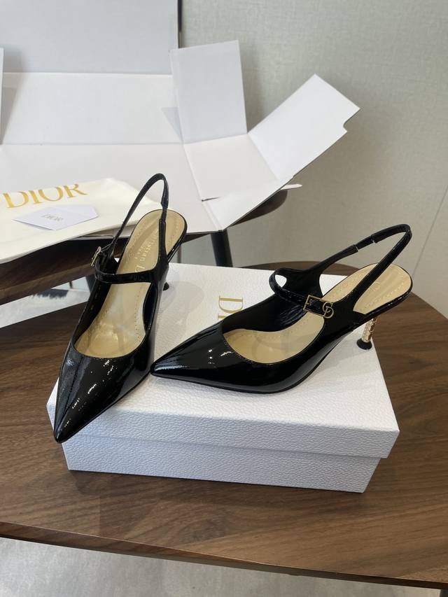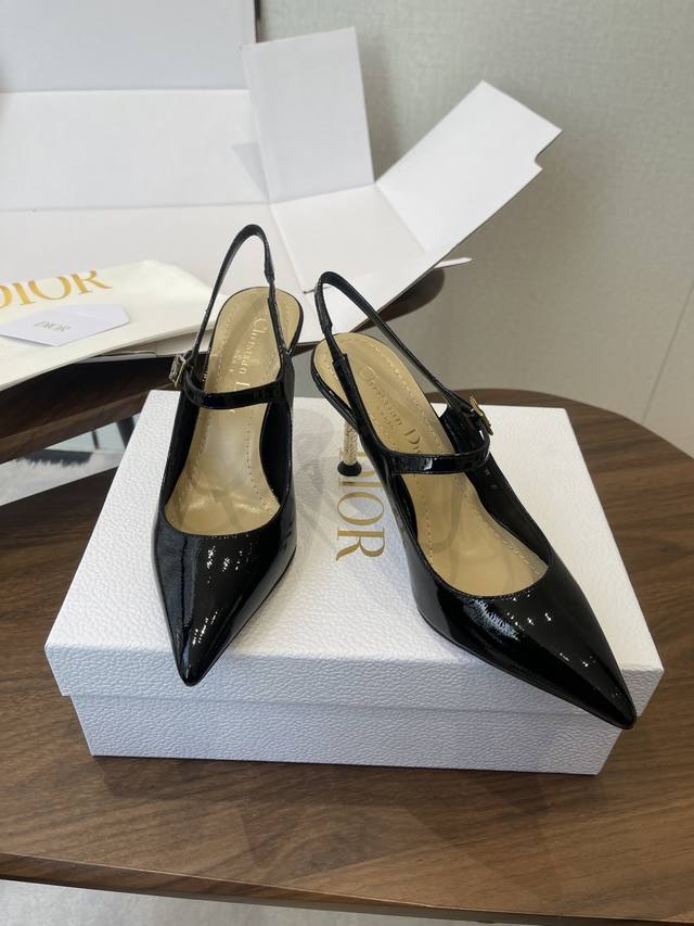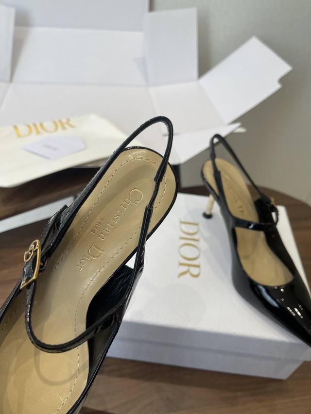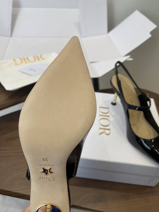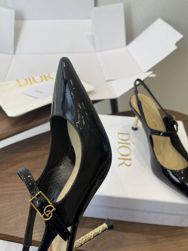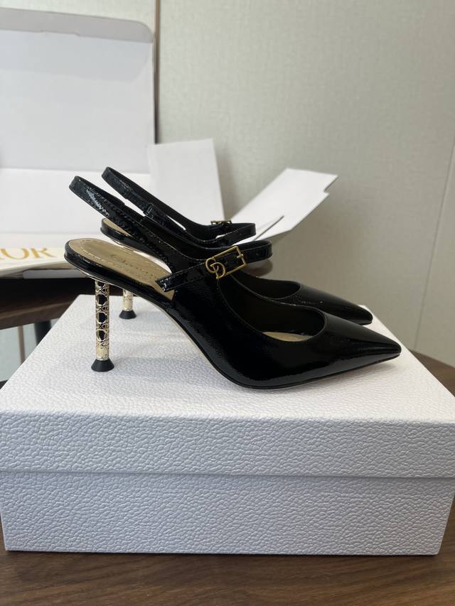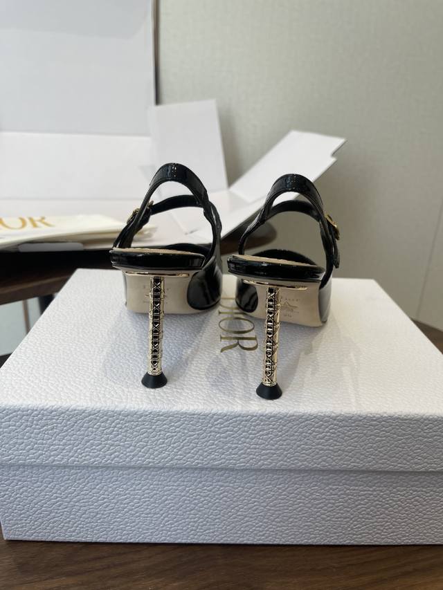 FFF 配原版飞机盒 26Ss春夏新款Dior 迪奥D-Icon露跟高跟鞋Cd五金扣尖头玛丽珍鞋搭扣后空高跟凉鞋铁跟高跟鞋 DDD 这款Dior Icon露跟高跟鞋向Dior的高订精神致敬。黑色褶皱漆皮牛皮革鞋面搭配尖头,可调节正面系带点缀以灵感源自Dior档案的相扣的Cd标志。搭配8厘米金色饰面金属藤格纹图案圆柱形细鞋跟,增添高雅的点睛之笔,彰显精致的美学风格。 DDD 可爱俏皮减龄又不失高级感~富家千金即视感~高雅大气名媛风! DDD 上脚超美~尽显优雅气质 精致小仙女必入单品 DDD 鞋面:定制小牛