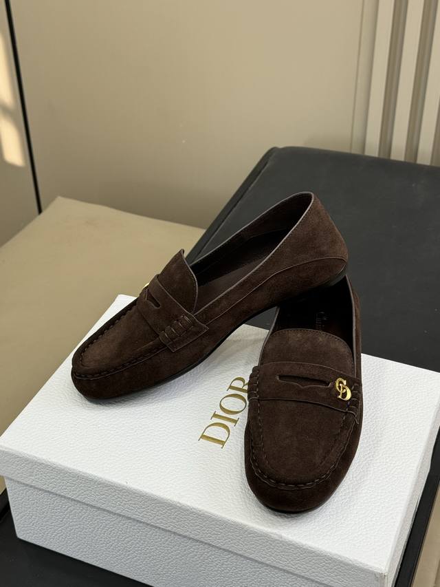 顶级品质 Dior 25秋冬乐福鞋新品 很秀气的单品,简约好看! 小牛皮材质,微皱亮面皮,质感超赞的 咖啡色很秋冬,四季可穿的单品 Size 35-41