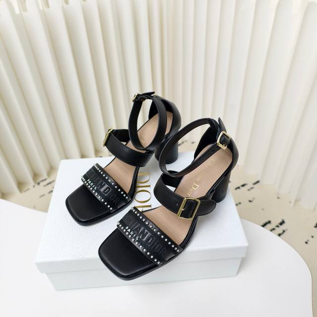 迪奥 Dior Dway 2025春夏最新款高跟电绣拼色罗马凉鞋 Cd字母Logo五金扣明星同款一圈带鱼嘴露趾珍珠女鞋