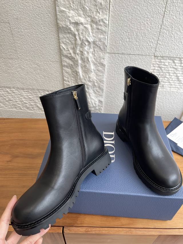 / 顶级版本:皮里 毛里 Dior迪奥秋冬走秀款工装中筒靴、超多明星网红种草、鞋面采用原版牛皮,原版定制靴筒 材质内里垫脚原版进口牛皮、意大利进口原版五金扣经过多重