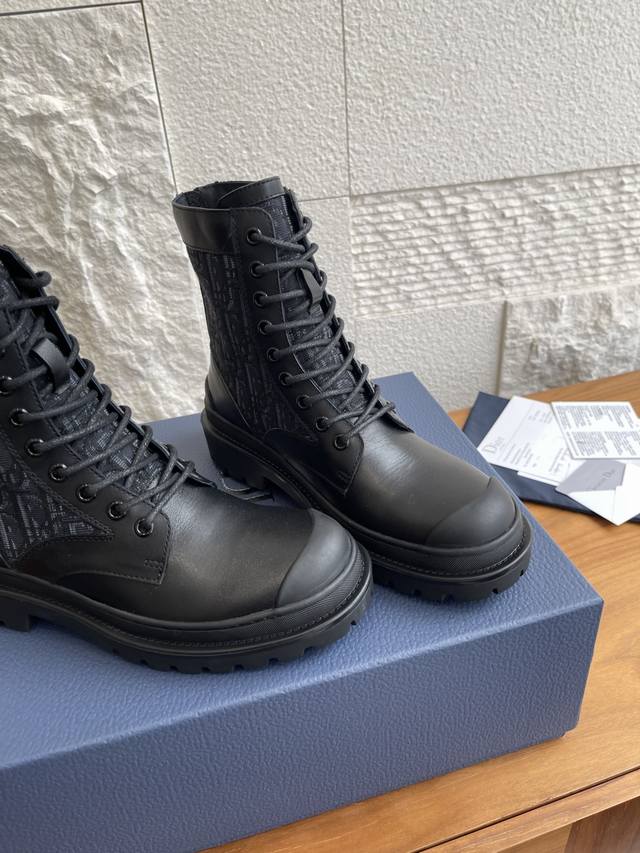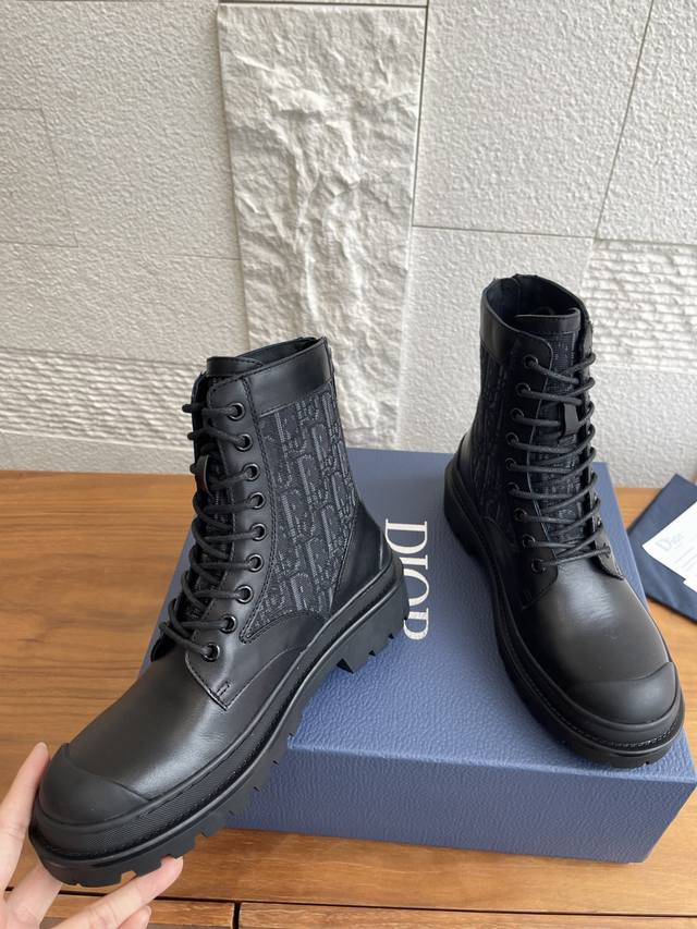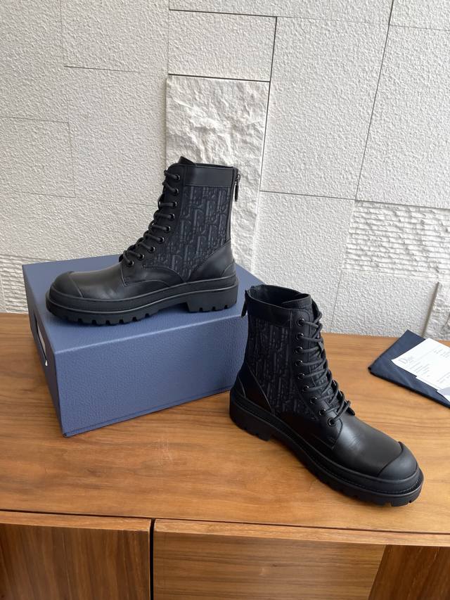 顶级版本:皮里 毛里 Dior 迪奥 秋冬新款 Explorer系列 羊毛 短靴 骑士 马丁靴 及踝靴 这款 Dior Explorer 及踝靴采用黑色光滑牛皮革精心制作,两侧饰以米色和黑色 Oblique 印花拼接。搭配羊皮革全里料,打造舒适穿着体验。后侧拉链开合,可轻松穿脱。饰以Dior标志补丁,搭配凹口橡胶鞋底和同色调加固橡胶鞋头,更显精致。可搭配本季各式单品,打造时尚造型。 面料:原版进口头层牛皮+刺绣面料 内里:原版进口羊毛里 大底:独家开模防滑橡胶鞋底 Size: 35-41 40 41定做不