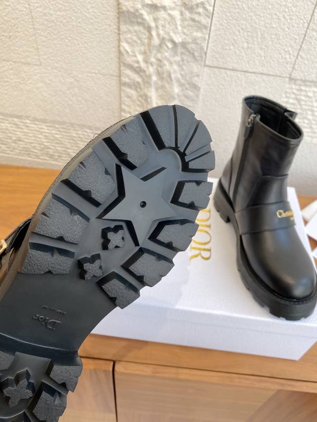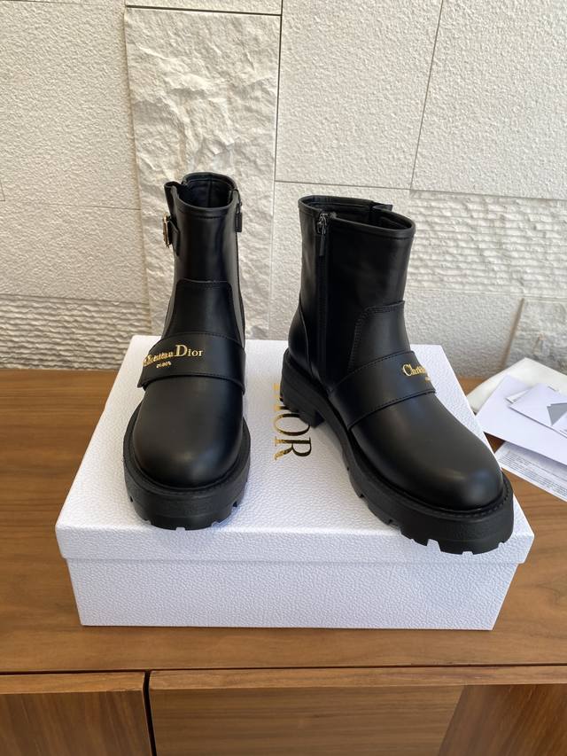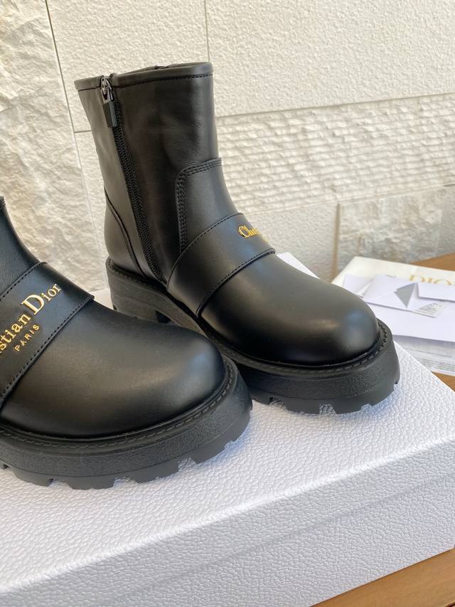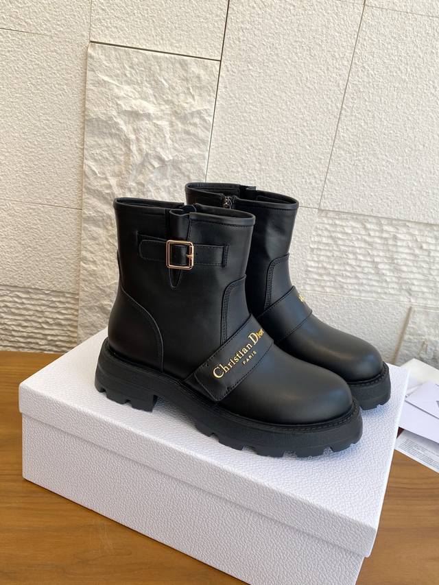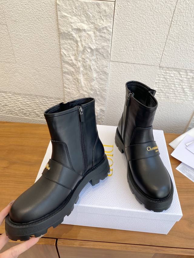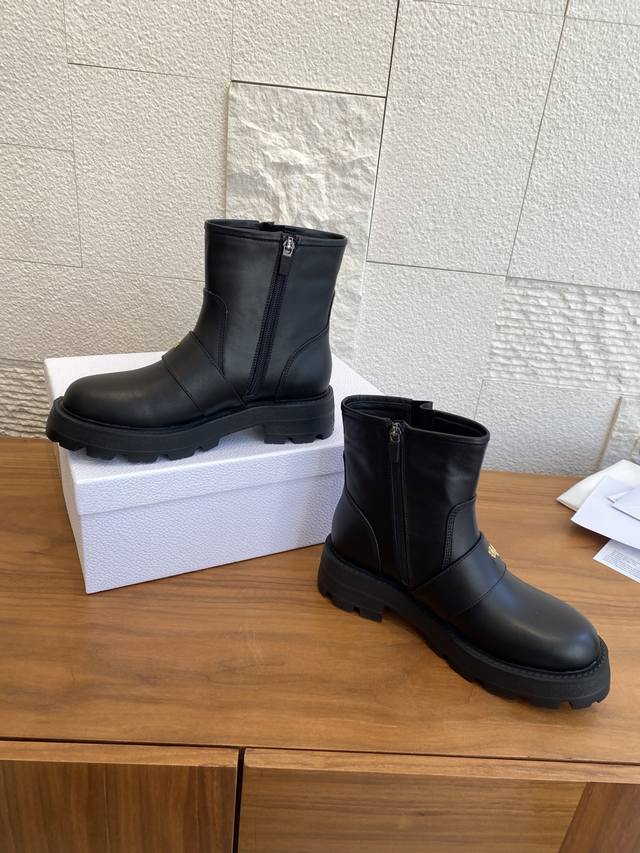 顶级版本:皮里 毛里 DDD Dior 迪奥 25Ss 秋冬新款 D-Scots 系列 短靴 及踝靴 DDD 这款 D-Scots 靴子是二零二五早春成衣系列新品,彰显高订魅力。黑色橡胶效果牛皮革筒形设计,侧面饰以银色饰面 Christian Dior paris 标志补丁提升格调。搭配厚实而轻盈的凹口鞋底,可为本季休闲造型增光添彩。 DDD 面料: 原版定制进口牛皮 DDD 内里: 进口牛皮里 羊毛里 DDD 大底: 原版开模大底 DDD Size: 35-41 40 41定做不退换 DDD