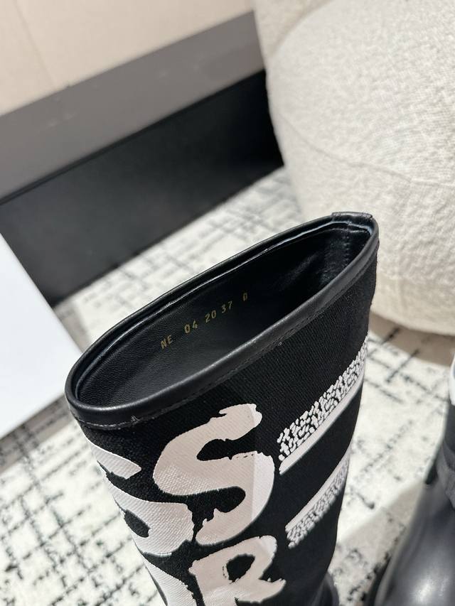 / 顶级版本 升级版全套包装 Dior24 刺绣中筒靴 高密度进口机器梭织!电绣工艺,并非市面飞织 弹力布!织带和圆扣全部原版开模!高密度Tpu大底!鞋面电绣工艺被