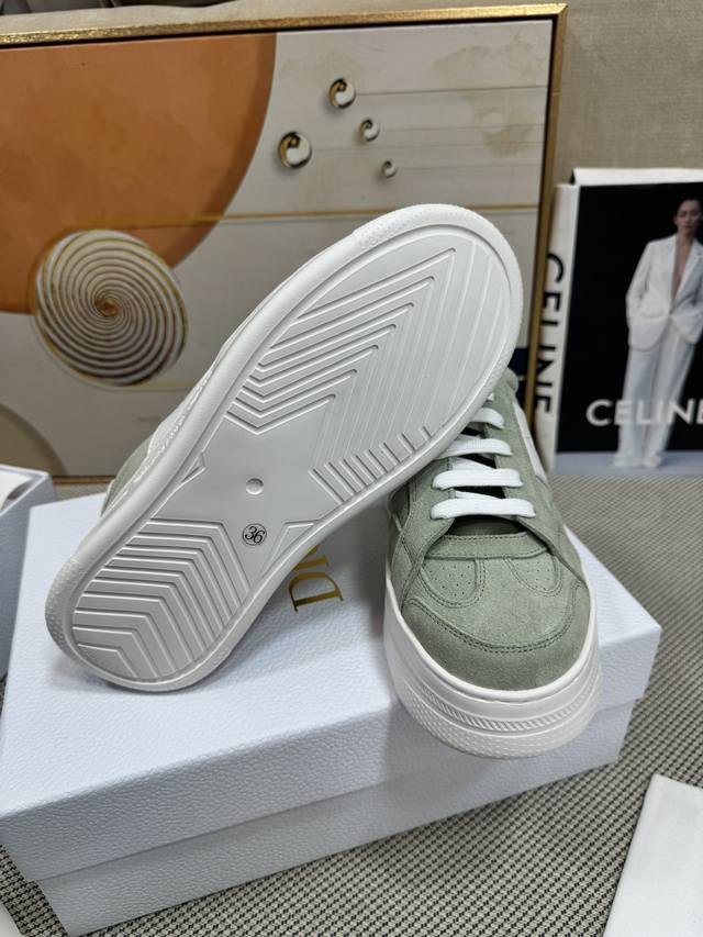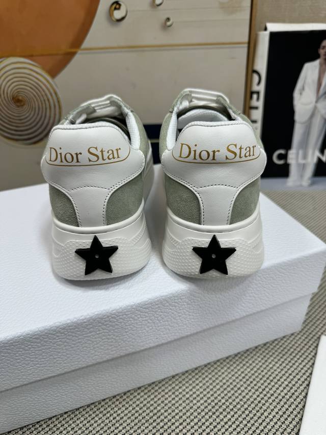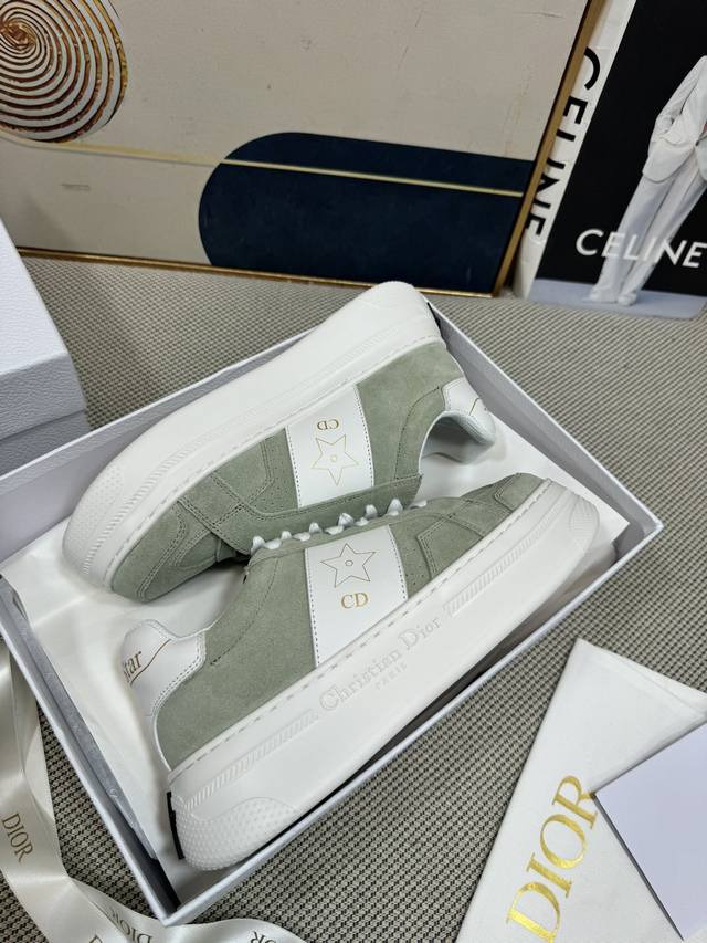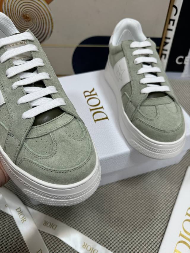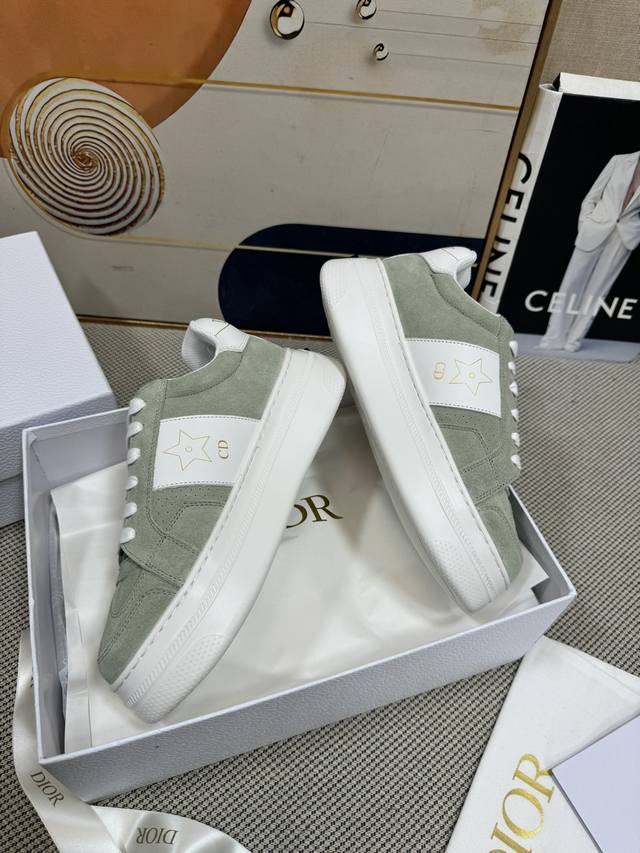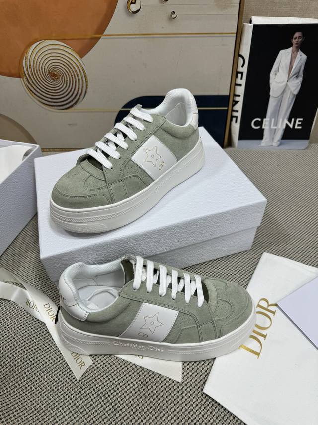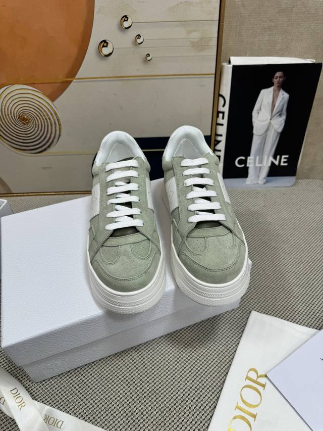 / 顶级版本 厚底迪奥 爆款 最新款休闲百搭 Dior One Oblique 印花字母Logo镂空圆头低帮系带滑时尚 明星同款平底拼色运动 五角星标志 材质:小牛