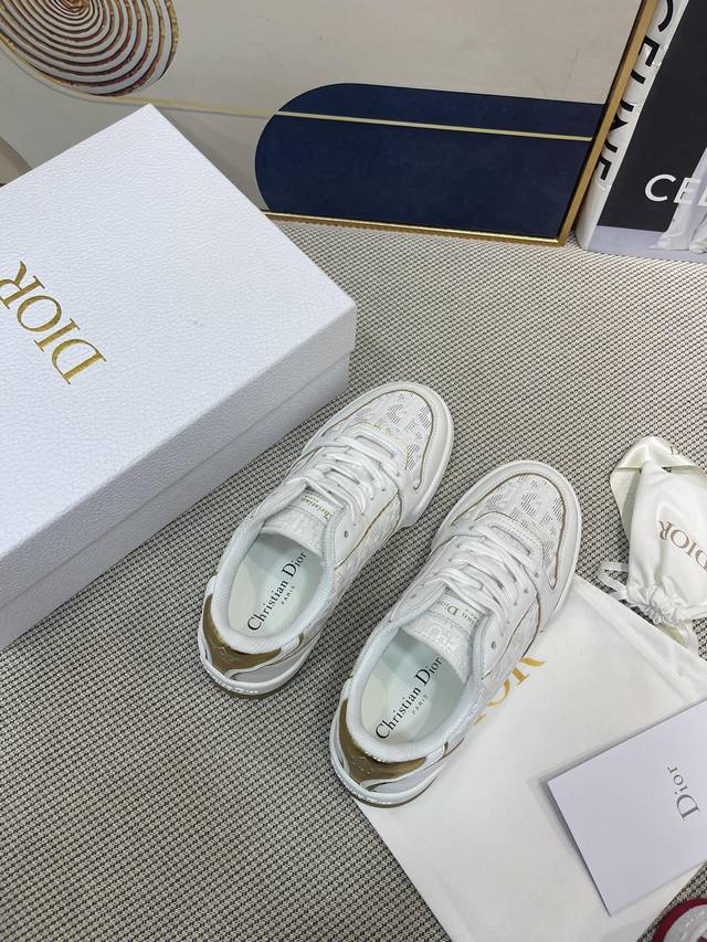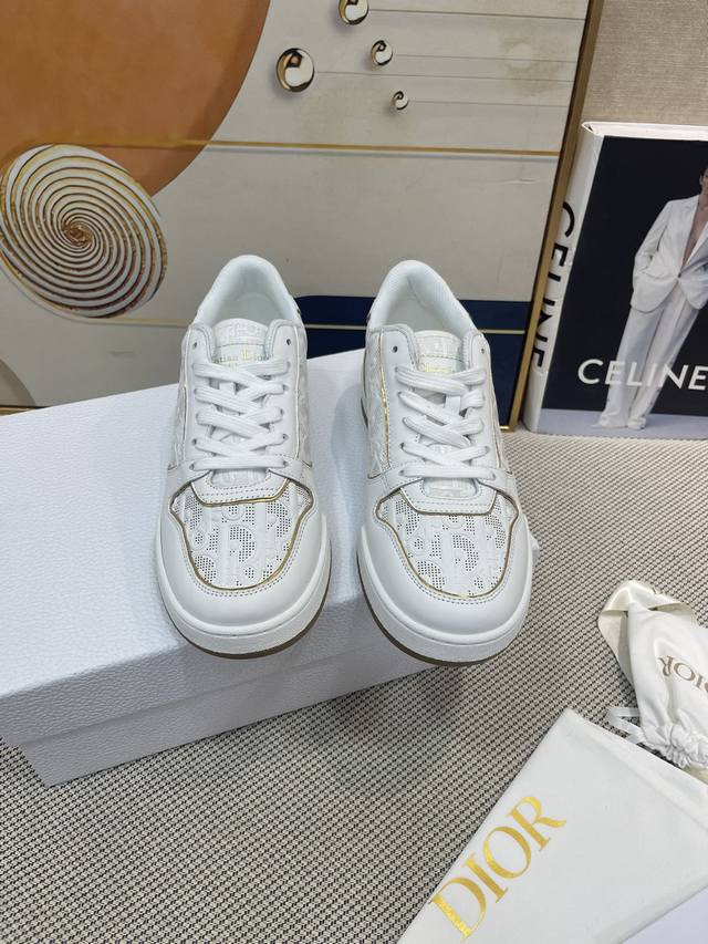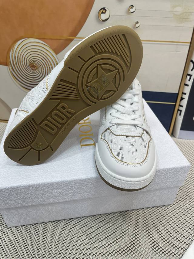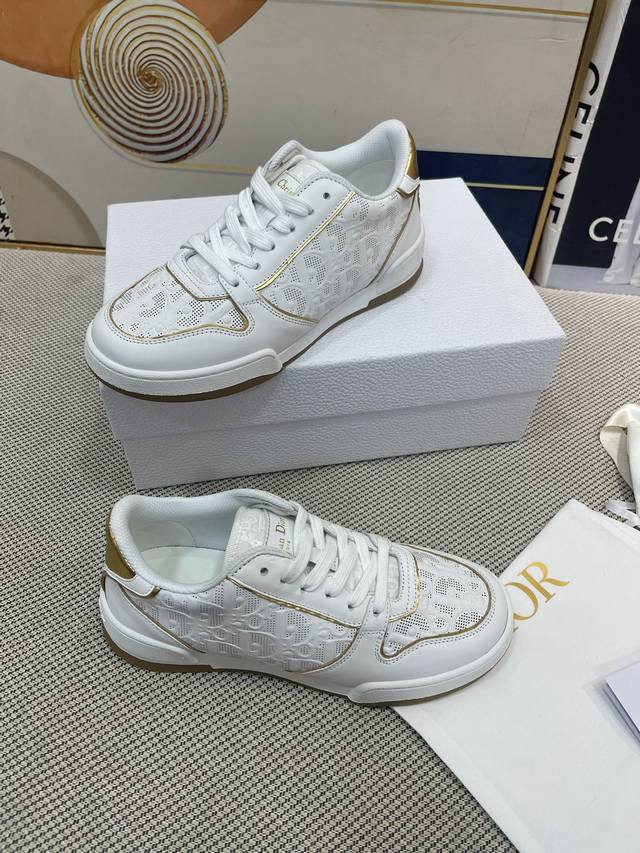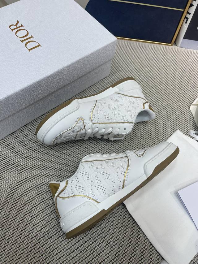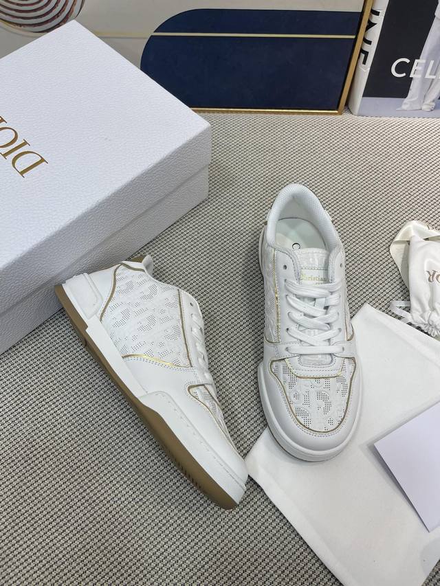 顶级版本 新款系列 DDD 原版购入开发 做货 本季新款 Dior One 运动鞋时尚现代,彰显 品牌的精湛工艺。采用白色牛皮革精心制作,搭配 Oblique 印花效果镂空镶片,别具一格。内底饰以星星,鞋舌饰以Christian paris标志。可与本季各式休闲单品搭配,为时尚造型亮丽点睛。 DDD 面料: 进口小牛皮冲孔压花 DDD 内里:进口透气网里 DDD 鞋底:原版开模双色Tpu大底 DDD 底厚:2.5Cm DDD Size: 女款35-40 41定制不退换 DDD