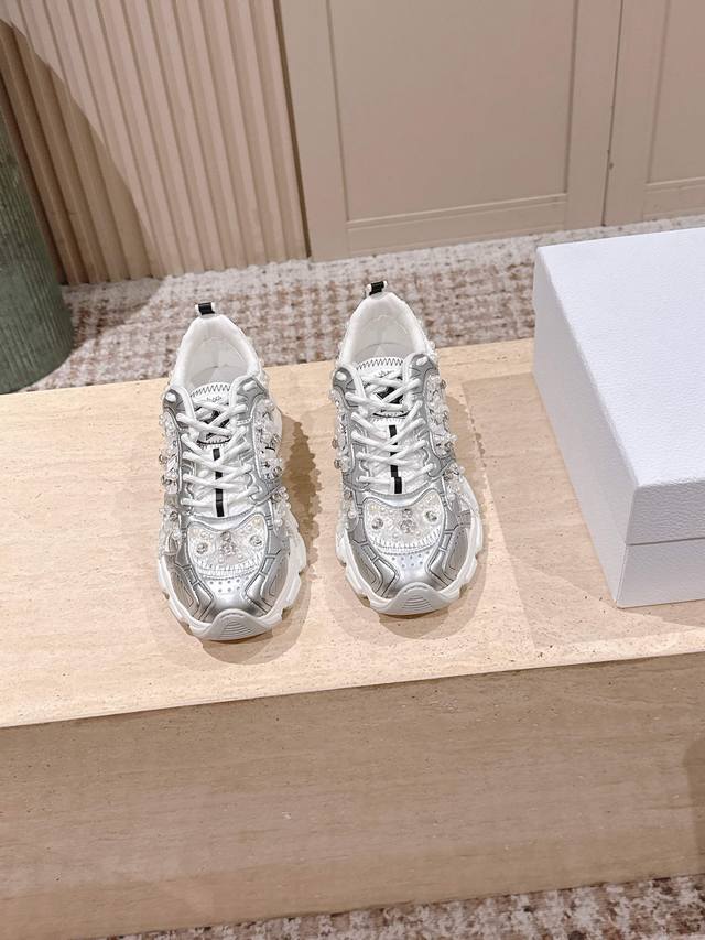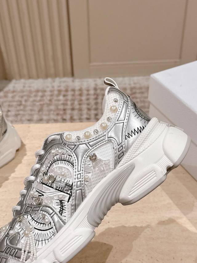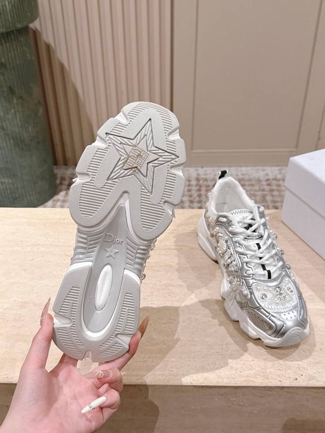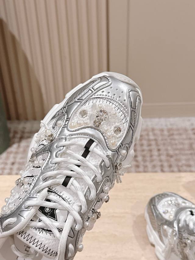 顶级版本: : 最新珍珠水钻两色 迪奥 Dior Chrono 新款休闲运动鞋跑鞋老爹鞋 真的酷毙了,未来感十足原版完美复刻!全对版材质 模具!!35-40
