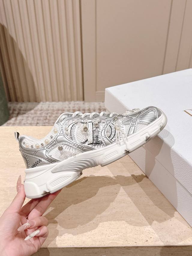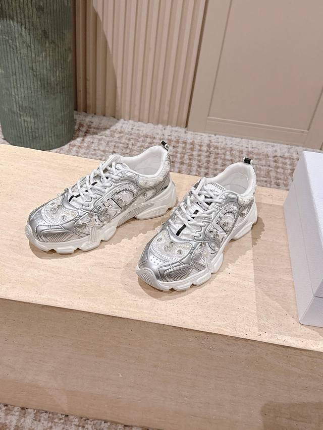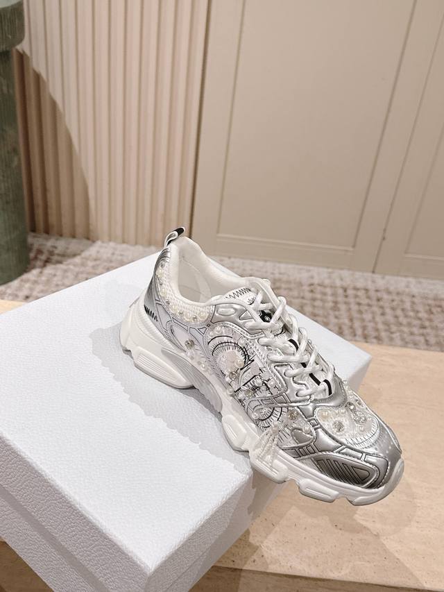顶级版本: : 最新珍珠水钻两色 迪奥 Dior Chrono 新款休闲运动鞋跑鞋老爹鞋 真的酷毙了,未来感十足原版完美复刻!全对版材质 模具!!35-40 DDD