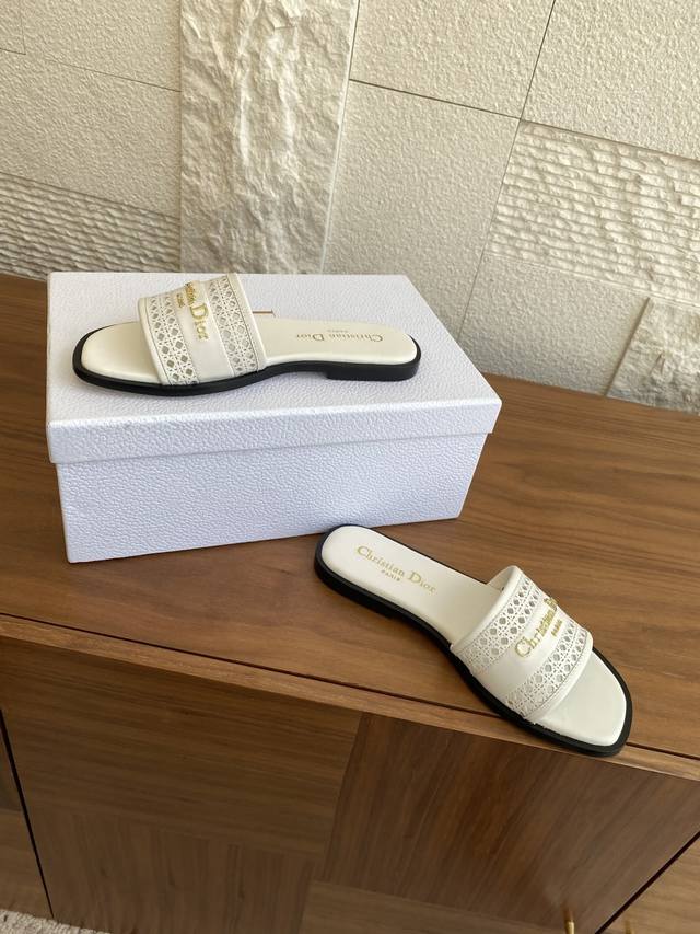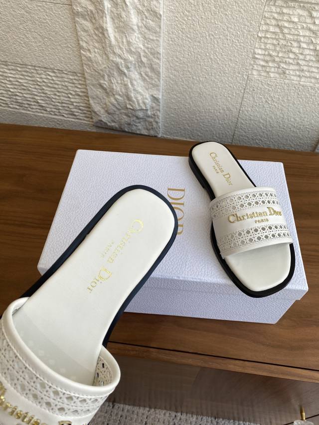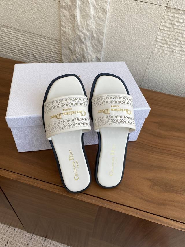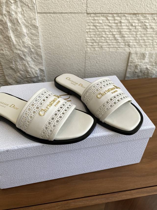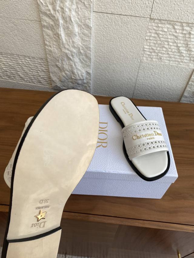 迪奥 Dior 专柜新款 双层对贴牛皮 工艺镂空高品质拖鞋 市面顶级版本 可与专柜对比 鞋面 进口小牛皮+牛皮内里 大底 原版开模...