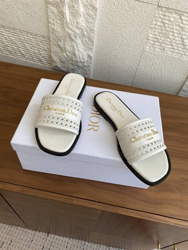 / 顶级版本: Dior迪奥 25Ss 春夏新款 Cd字母Logo五金扣镂空 藤格纹图案 拖鞋 这款 D-Lane 凉拖彰显经典风格。黑色牛皮革鞋面,展示镂空藤格纹