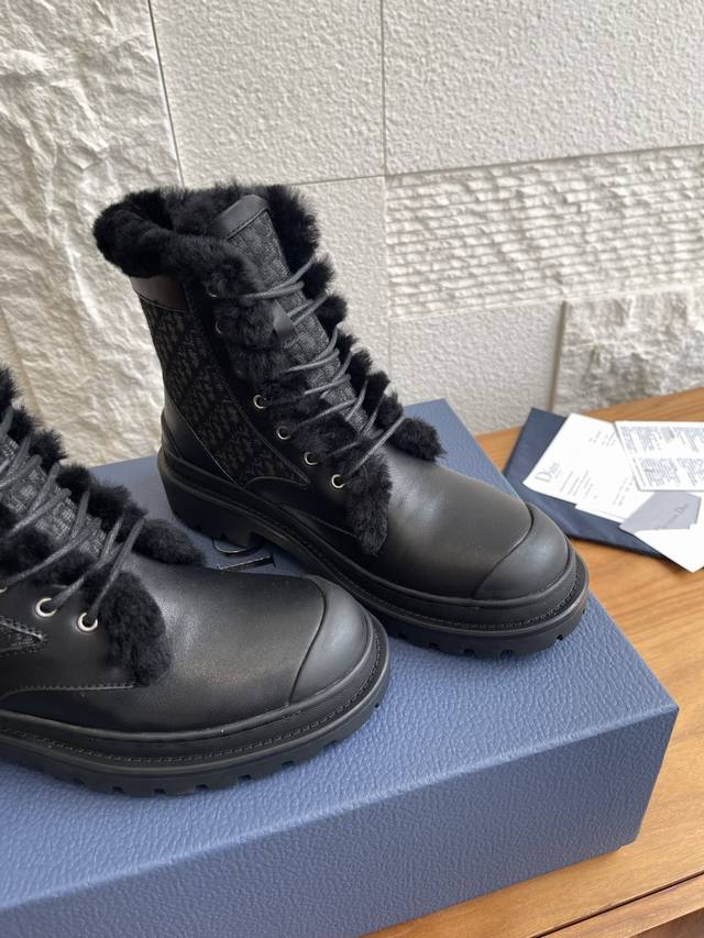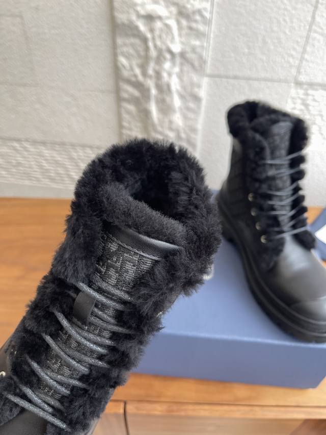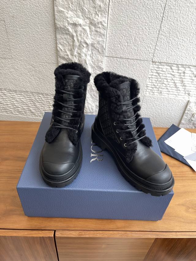 顶级版本: Dior 迪奥 秋冬新款 Explorer系列 羊毛 短靴 骑士 马丁靴 及踝靴 这款 Dior Explorer 及踝靴采用黑色光滑牛皮革精心制作,两侧饰以米色和黑色 Oblique 印花拼接。搭配羊皮革全里料,打造舒适穿着体验。后侧拉链开合,可轻松穿脱。饰以Dior标志补丁,搭配凹口橡胶鞋底和同色调加固橡胶鞋头,更显精致。可搭配本季各式单品,打造时尚造型。 面料:原版进口头层牛皮+刺绣面料 内里:原版进口羊毛里 大底:独家开模防滑橡胶鞋底 Size: 35-41 40 41定做不退换