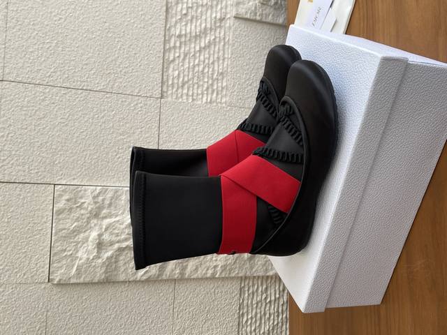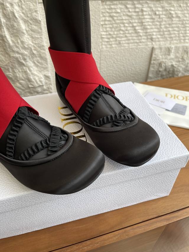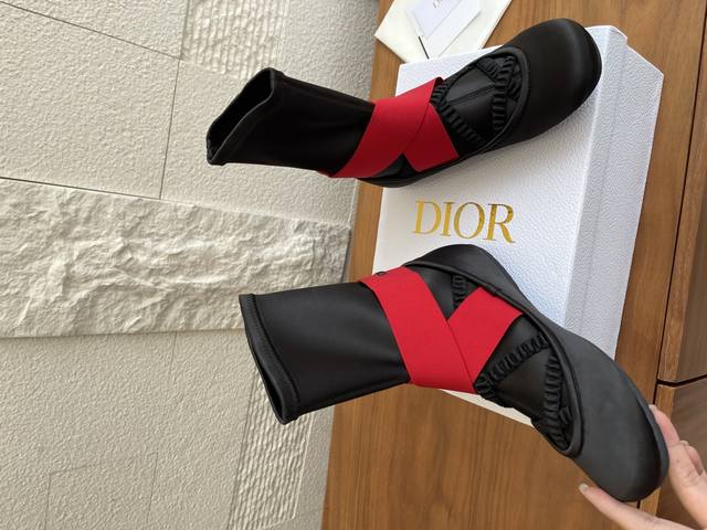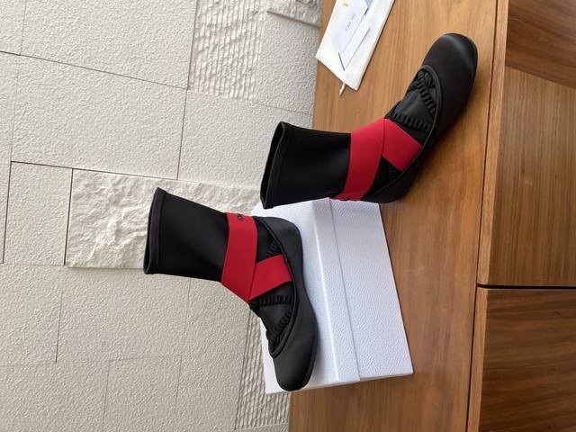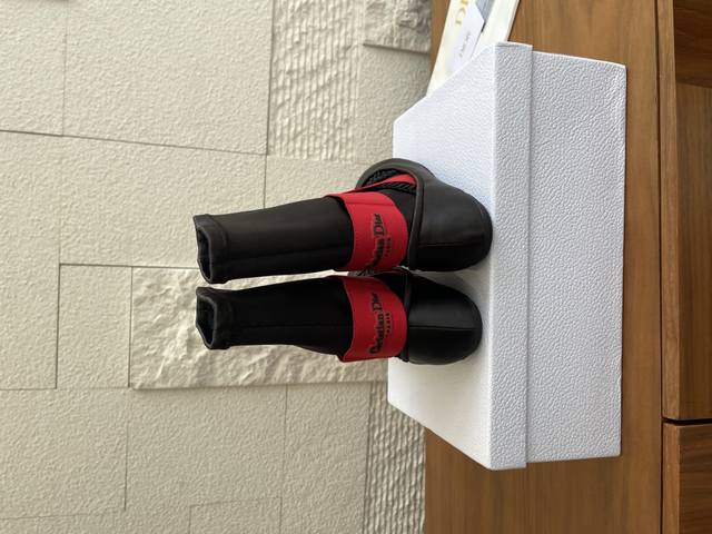 顶级版本: Dior 迪奥 25Ss 秋冬新款 芭蕾舞 弹力短靴 袜子靴 Dior迪奥芭蕾平底鞋袜子靴是 2025年秋季系列的新品,拥有高级定制的外观。缎面鞋面在前部露出细的同色系弹性带、女性化的领口和圆头,而装饰脚踝的宽红色交叉弹性带则在后部以黑色橡胶制成的 Christian Dior Paris 标志点缀。这款舒适的芭蕾舞鞋配有黑色凹口橡胶鞋底,将为您所有季节的装扮增添迪奥 Dior 风格。 面料: 进口真丝绸缎 进口小牛皮 内里: 进口羊皮 大底: 原版开模Tpu大底 Size: 35-41 40