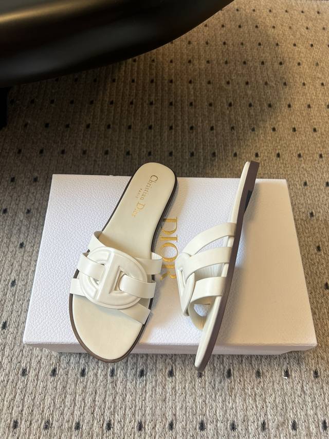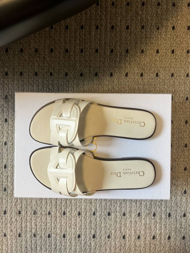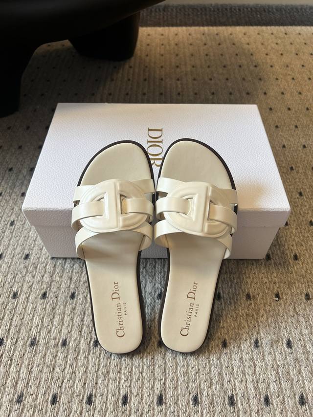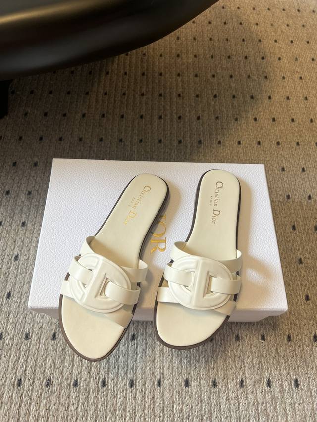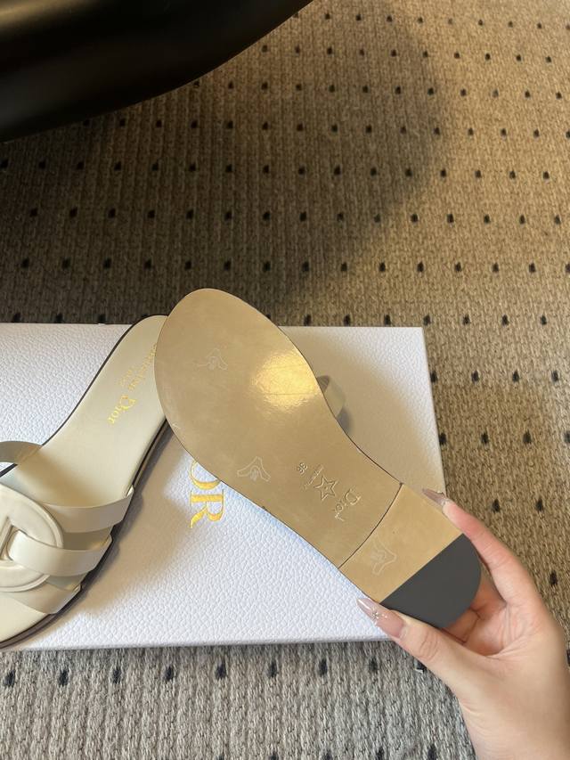 / 顶级版本 Dior 25Ss 新款Cd标志平底拖鞋以简约优雅的设计重新诠释经典款式。鞋面精致的金色调叠层牛皮革饰带点缀以交叉 Cd 标志。加垫皮革内底穿着舒适,
