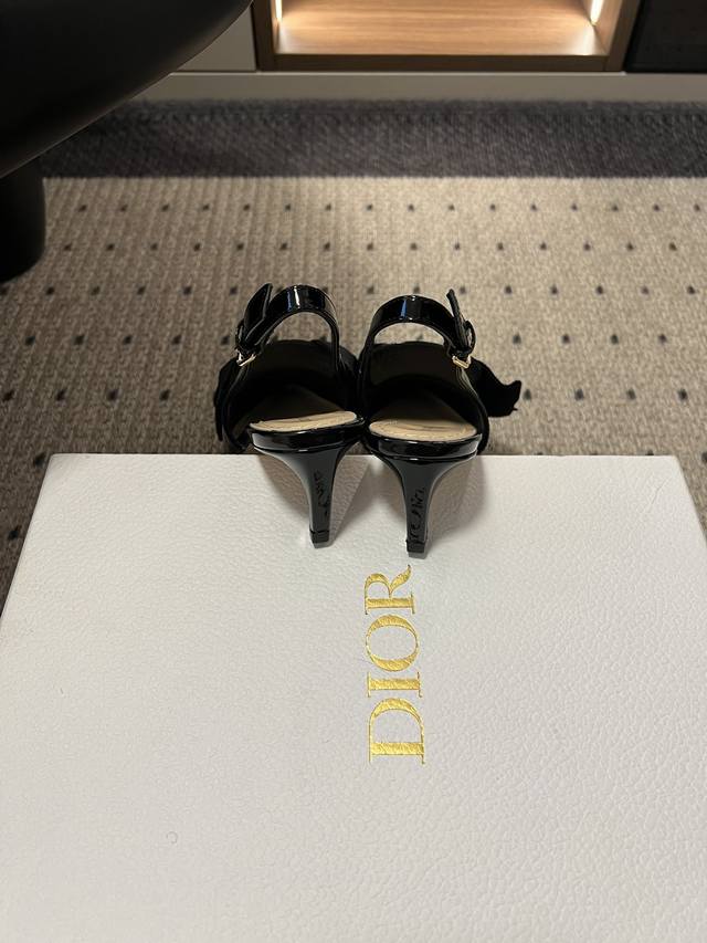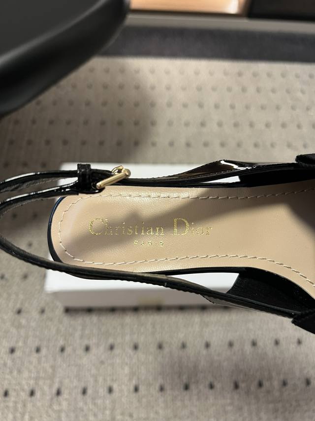 这款 My Dior 露跟高跟鞋是2025春夏成衣系列新品,精致优雅。采用漆皮牛皮革精心制作,尖头设计,点缀以金色饰面金属