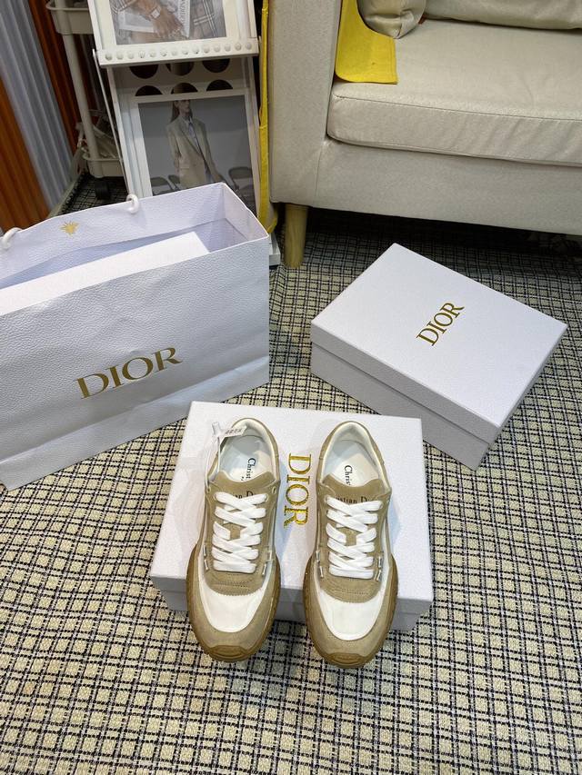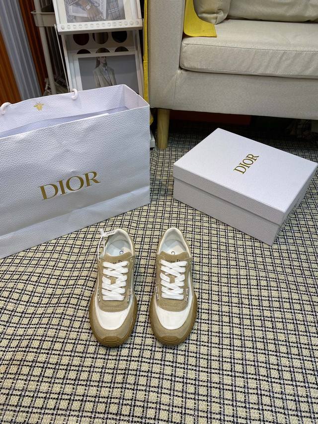 / 顶级版本Christian Dior 迪奥新款情侣 休闲鞋 德训鞋 鞋面采用麂皮和网面拼接 精心制作,正面饰以同色调绒面牛皮革镶片, DDD 系带设计,穿脱方便