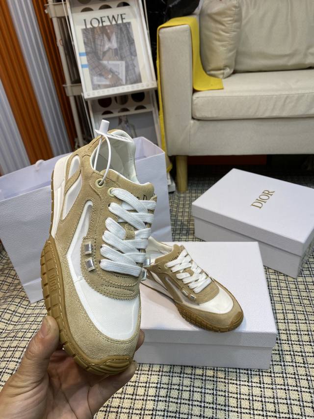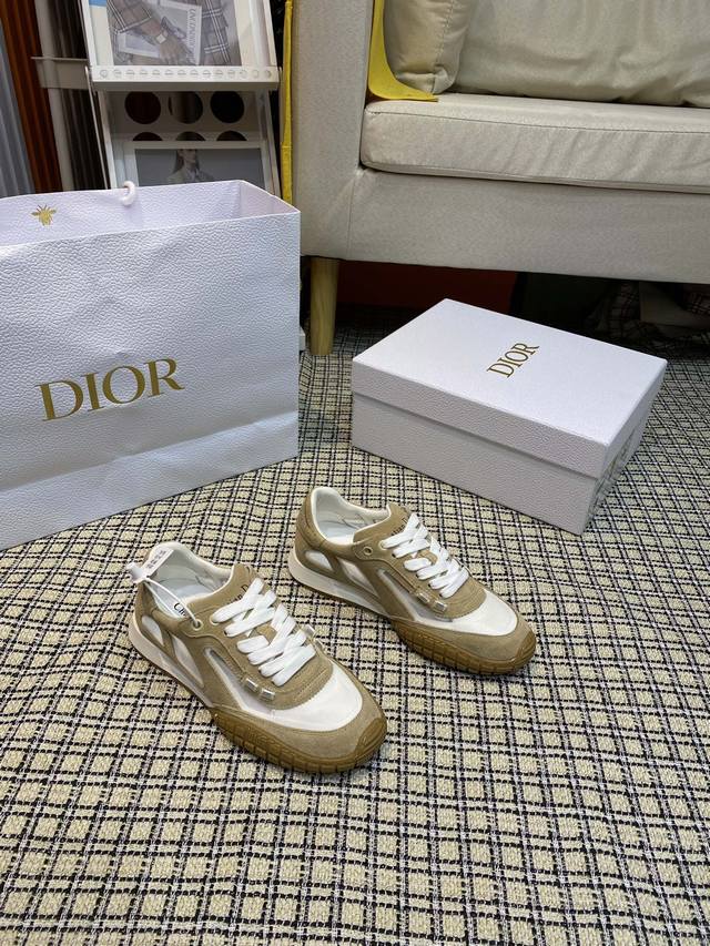 顶级版本Christian Dior 迪奥新款情侣 休闲鞋 德训鞋 鞋面采用麂皮和网面拼接 精心制作,正面饰以同色调绒面牛皮革镶片, DDD 系带设计,穿脱方便