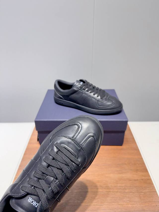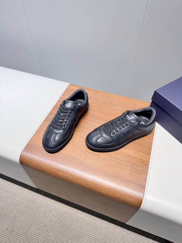 顶级版本!!!Dior迪奥 最新 B01系列 Matchpoint 情侣款 德训鞋 休闲 运动鞋原版购入开发 做货 这款 B01 Matchpoint运动鞋是二零二五秋季系列新品,标志着 Dior 经典款式的回归,以时尚优雅的廓形重新诠释。采用黑色和白色光滑牛皮革精心制作,饰以灰色绒面革拼接提升格调。鞋舌和内部侧面饰以 Dior 标志,鞋后跟饰以 Cd Icon 标志。搭配琥珀色橡胶鞋底,点缀以 Dior 标志,可与 Dior Icons 限定系列的各式造型搭配,打造精致造型配送专柜精美包装 面料 : 原