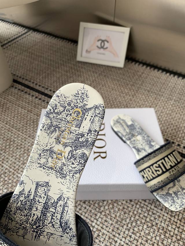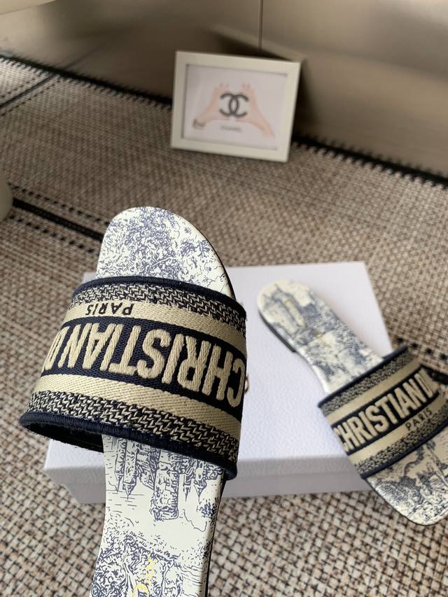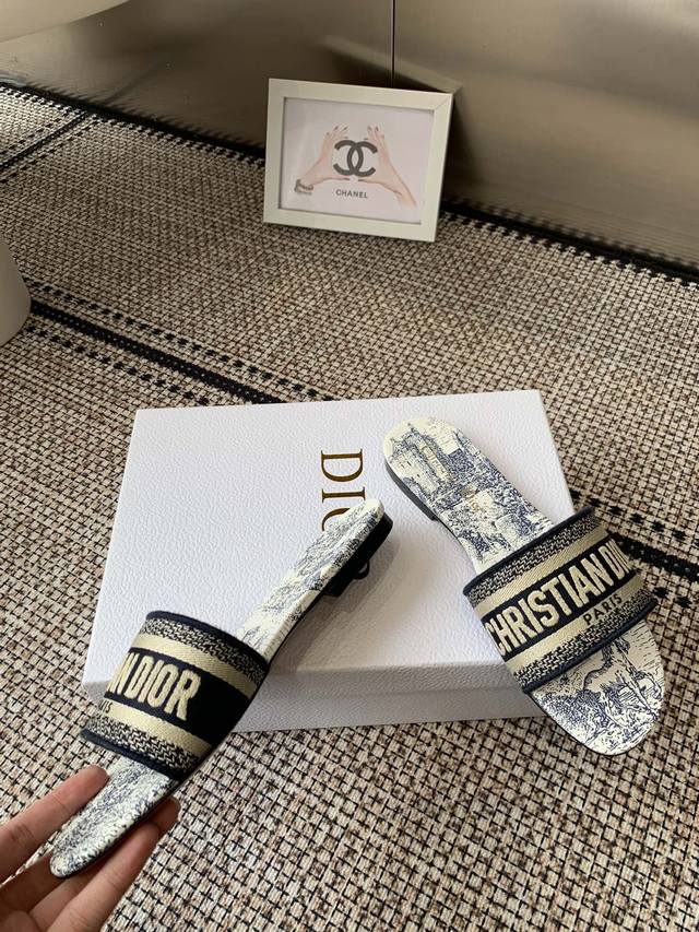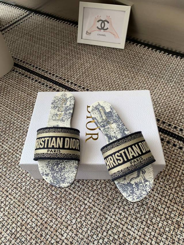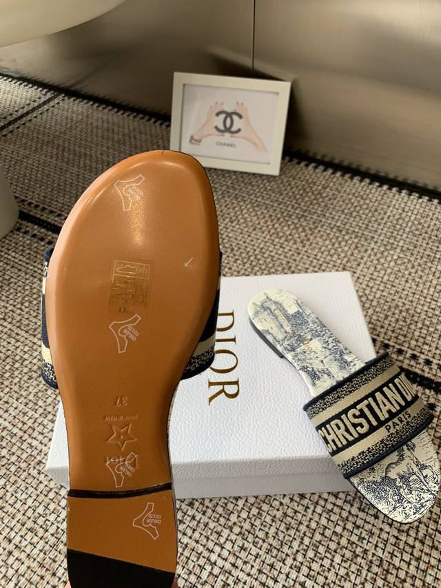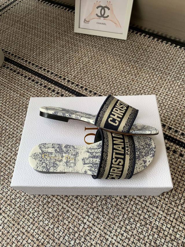 / 顶级版 Dior 2025Ss 春夏新款 电绣刺绣平底拖鞋 这款拖鞋真的好穿又好看,今年的颜色真的超美,每个色都想入 无敌显白 面料:进口绵羊皮 羊皮内里 意大