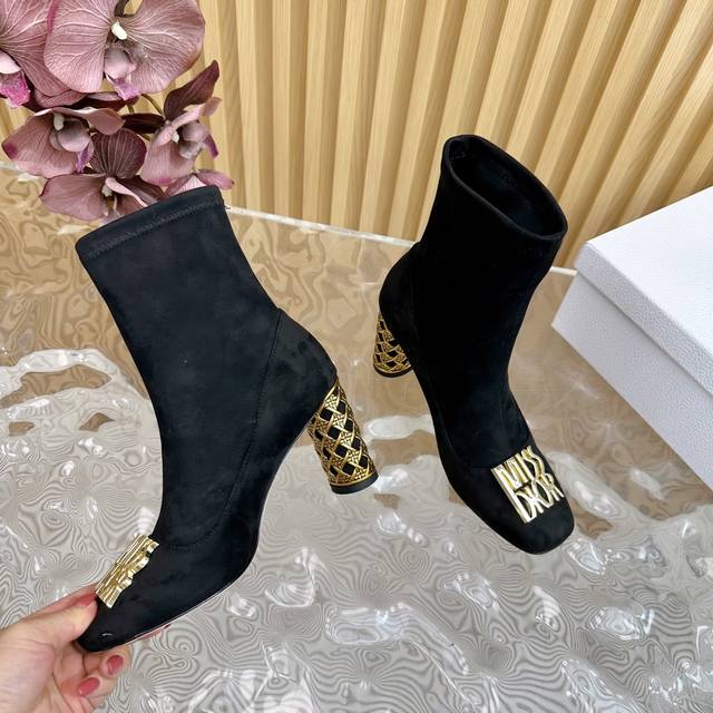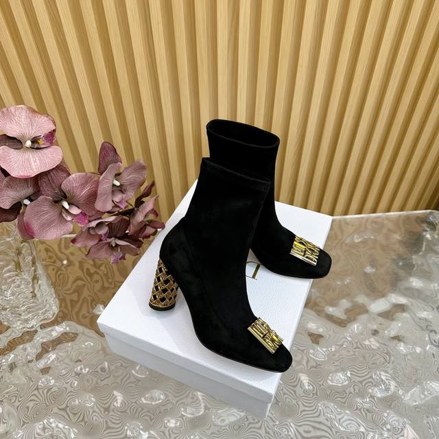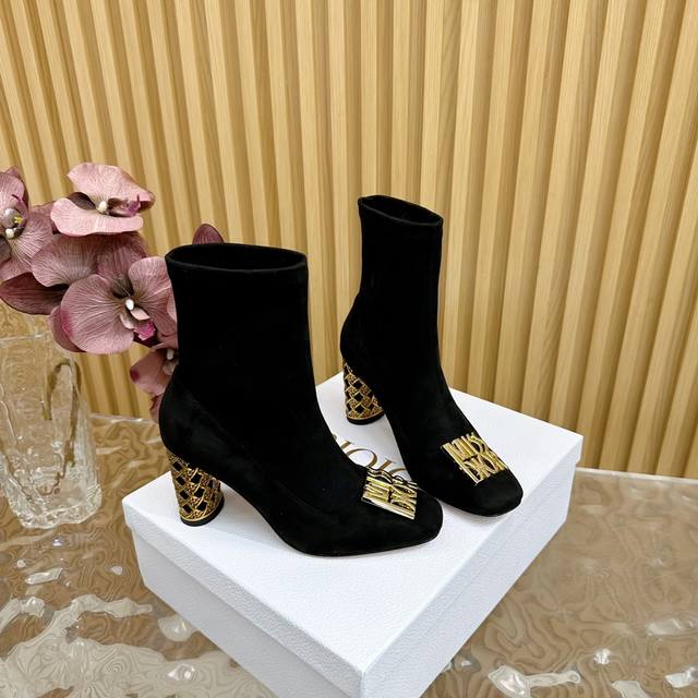 顶部版本专柜同步更新 Dior 秋冬 新款鸟笼跟短靴系列 延续D家永恒经典!这款鞋低调不失华丽 性感又不显张扬 鞋型是大家都爱的秀气款 非常非常显瘦 侧面整个弧度将脚部曲线完美展现 既有成熟女人味 又不乏一丝活泼少女感, 上脚也太好看了,值得推荐 Go 材质: 鞋面:羊京拼弹力绒 内里:混种羊皮 大底:意大利进口牛皮大底 跟高:4Cm 8Cm 码数:34–42 34 40 41 42定制不退换
