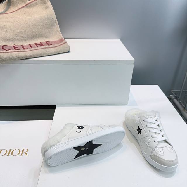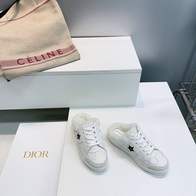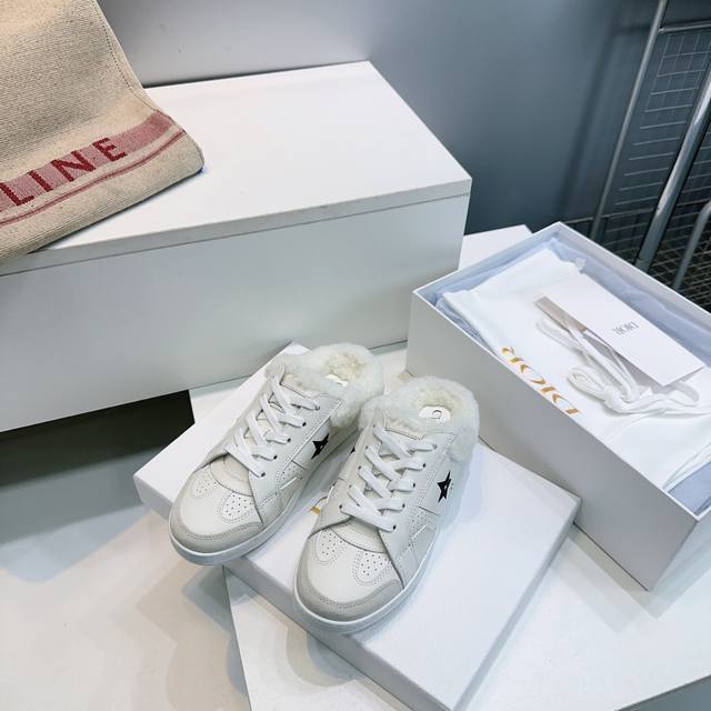 高品质出厂平底 !顶级品质Dior迪奥25Ss秋冬系列羊毛里保暖厚底休闲半拖小白鞋!这款Cd运动鞋为新款经典单品,舒适高雅。采用白色牛皮革精心制作搭配羊毛里料,饰以金色调Cd标志。搭配薄鞋底,营造轻盈穿着感受,可与各季休闲单品搭配,打造精致造型! DDD 鞋面采用原版小牛皮 DDD 内里垫脚纯羊毛,柔软舒适保暖! DDD 原版开模橡胶大底! DDD 码数:35-41 40 41订做不退换 DDD 配原版包装 DDD