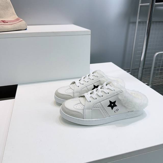 高品质出厂平底 !顶级品质Dior迪奥25Ss秋冬系列羊毛里保暖厚底休闲半拖小白鞋!这款Cd运动鞋为新款经典单品,舒适高雅。采用白色牛皮革精心制作搭配羊毛里料,