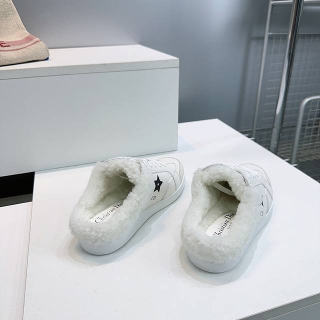 / 高品质出厂平底 !顶级品质Dior迪奥25Ss秋冬系列羊毛里保暖厚底休闲半拖小白鞋!这款Cd运动鞋为新款经典单品,舒适高雅。采用白色牛皮革精心制作搭配羊毛里料,
