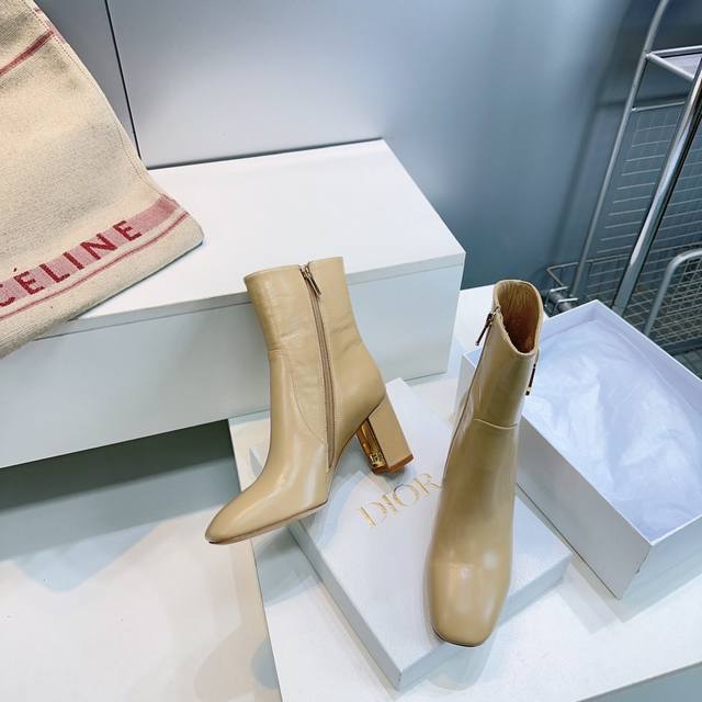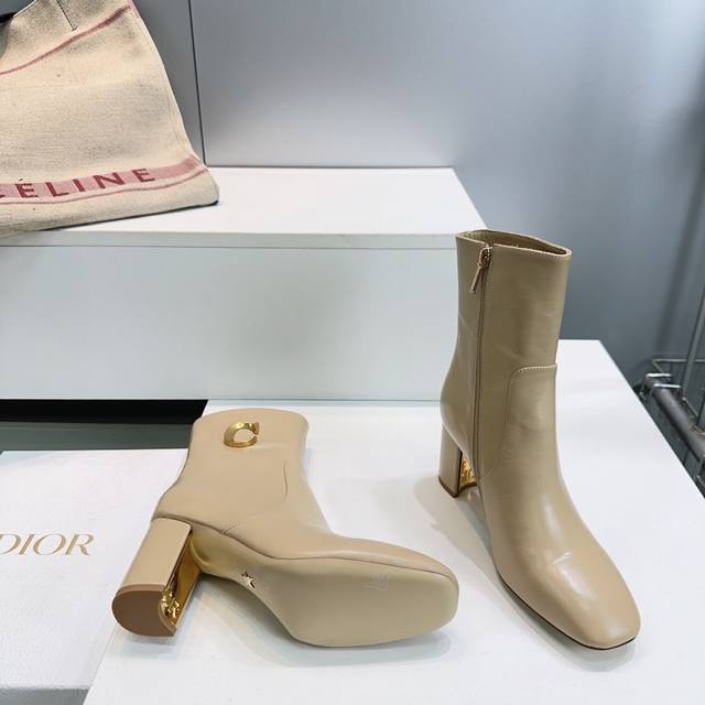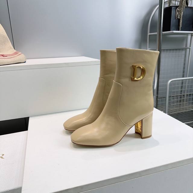 高品质出厂短靴 !顶级品质 Dior 迪奥25Ss秋冬新品Cd金属字母扣一脚蹬直筒子骨粗跟圆头短靴长靴骑士靴系列 这款靴子以现代风格彰显经典造型。直筒廓形,采用黑色柔软牛皮革精心制作,侧面饰以金色金属C D五金扣标志提升格调。精致款式,可为本季各式造型提升格调。 鞋面采用进口小牛皮 内里垫脚羊皮 意大利进口真皮大底 跟高:靴8Cm 码数:35-42 40.41.42定不退换 配原版包装