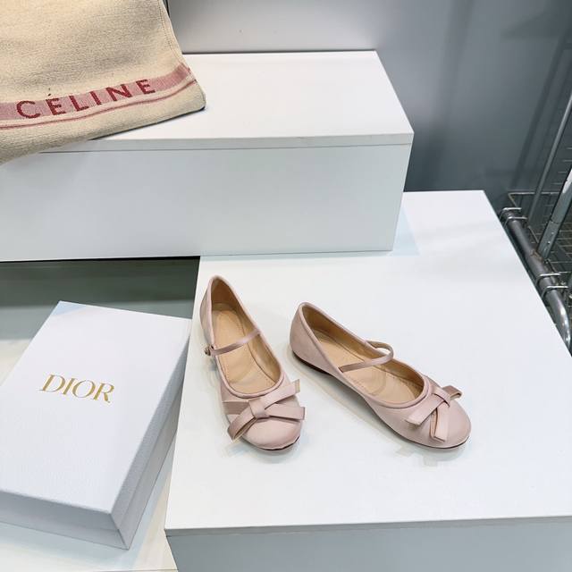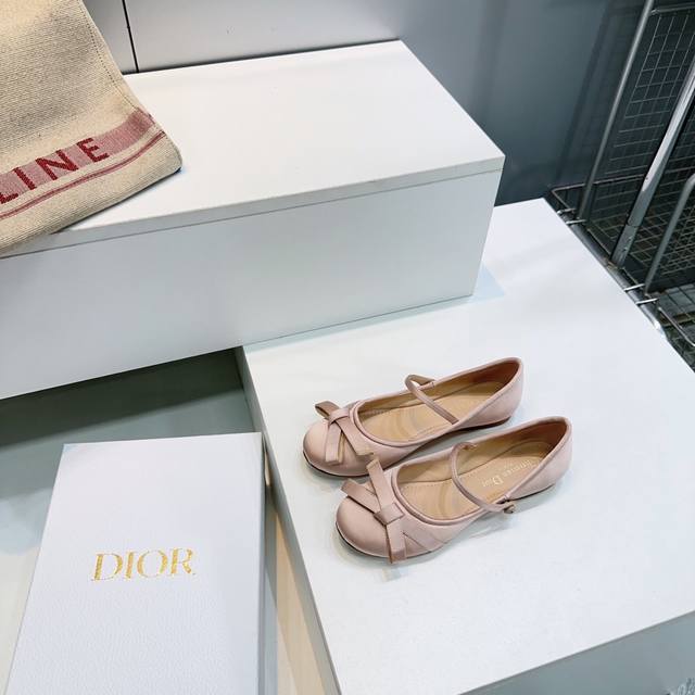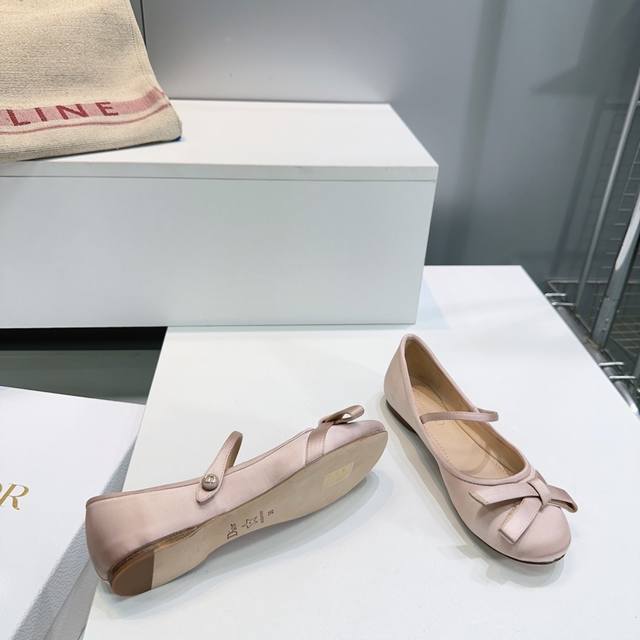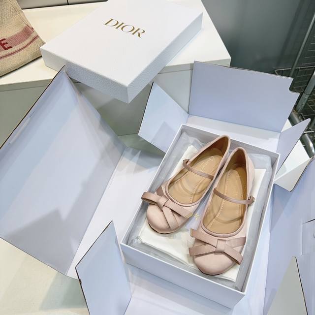 高品质出厂 !顶级品质原单渠道 官网同步飞机盒 Dior迪奥 25Ss秋冬新品蝴蝶结真丝平底、粗跟芭蕾舞鞋 新品D家真丝 蝴蝶结 单鞋 好乖啊~ 芭蕾鞋经典的迪