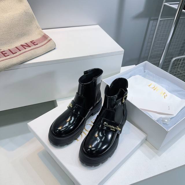 高品质出厂 !顶级品质Dior|迪奥25秋冬新品迪丽热巴同款粗跟厚底圆头侧拉链短靴重工马丁靴! D-Major 短靴的跟高设计巧妙,既有着恰到好处的增高效果,又能保证行走时的稳健与自在。无论是搭配简约的牛仔裤打造日常出街造型,还是与优雅的裙装组合出席重要场合,它都能轻松驾驭,完美诠释时尚百搭的真谛。 这双短靴鞋面采用顶级小牛皮材质,鞋面饰以凸印烫金Logo,彰显次品牌优雅大气的高级感。 鞋面采用开边珠牛皮 小牛皮 内里垫脚牛皮 原版开模橡胶发泡大底 码数:35-40 40订做不退换 配原版包装