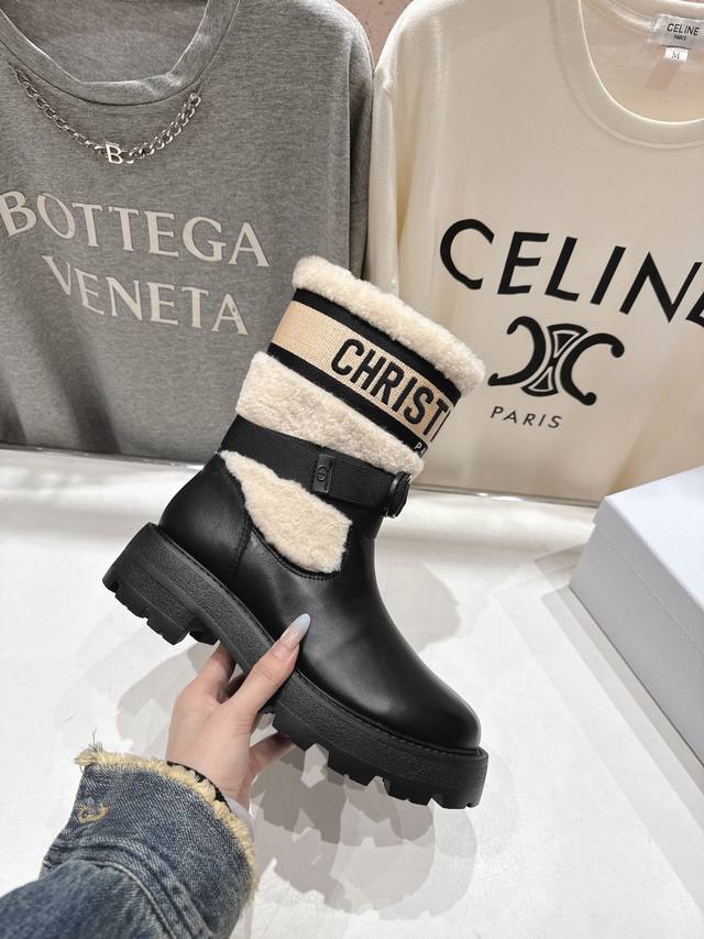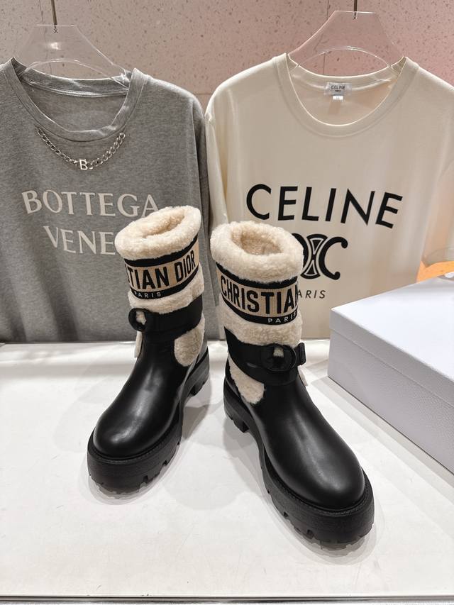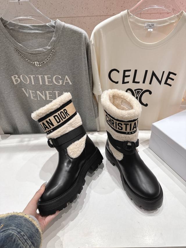 / 高版本出厂 皮里毛里两种可选 Dior*迪奥 D家F019 2025Ss走秀款工装中筒靴 小红书爆款,各大明星网红的最爱~ 鞋面采用原版牛皮,原版定制羊毛靴筒