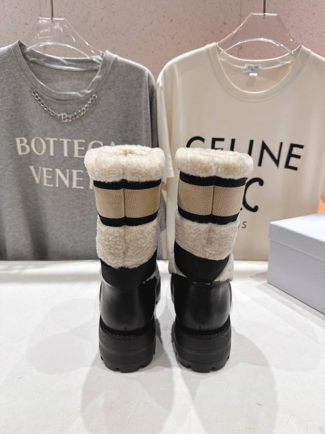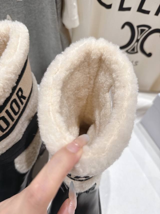 高版本出厂 皮里毛里两种可选 Dior*迪奥 D家F019 2025Ss走秀款工装中筒靴 小红书爆款,各大明星网红的最爱~ 鞋面采用原版牛皮,原版定制羊毛靴筒