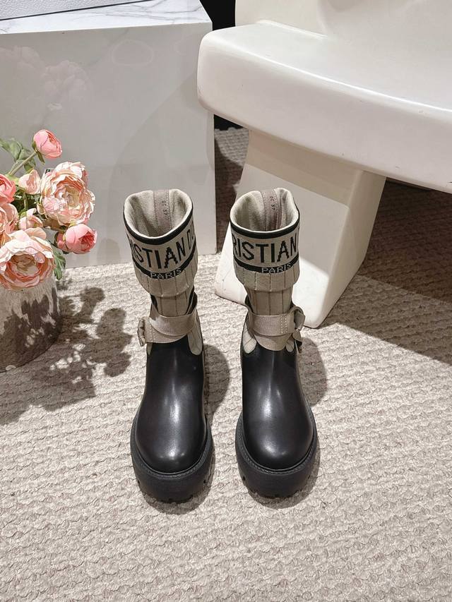 / 高版本出厂 Dior*迪奥 D家F019 2025Ss走秀款工装中筒靴 小红书爆款,各大明星网红的最爱~ 鞋面采用原版牛皮,原版定制靴筒 内里垫脚采用原版进口牛