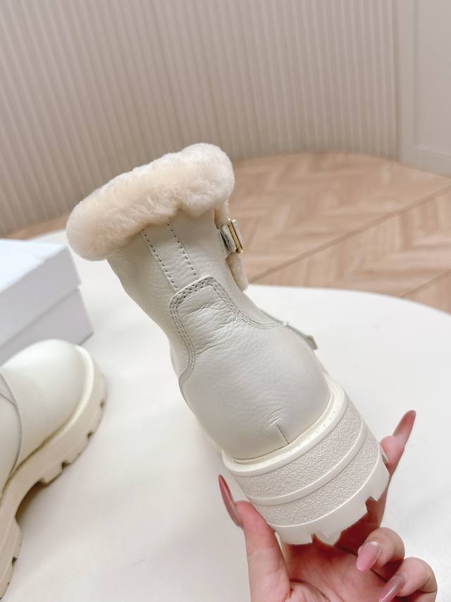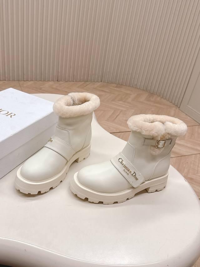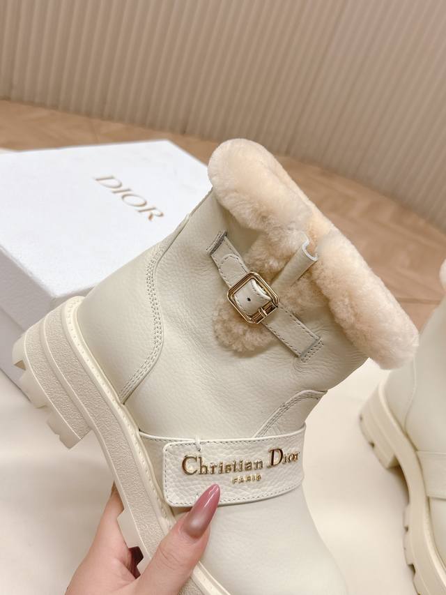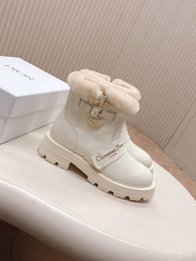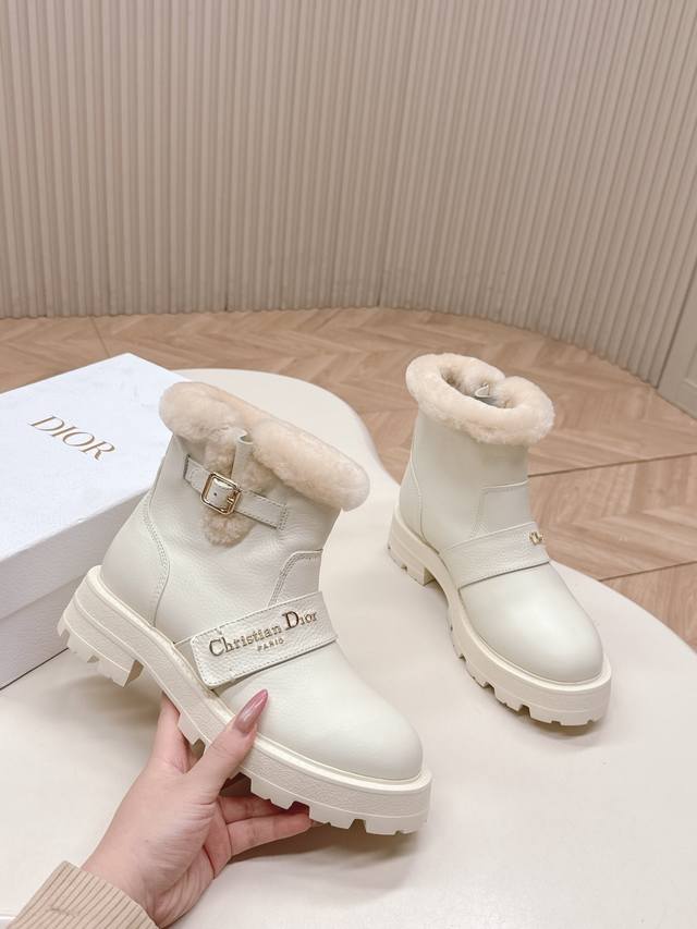 高版本 ,Dior 迪奥 一脚蹬时尚羊毛短靴马丁靴 冬季时尚保暖 全牛皮面 加厚羊羔毛 DDD