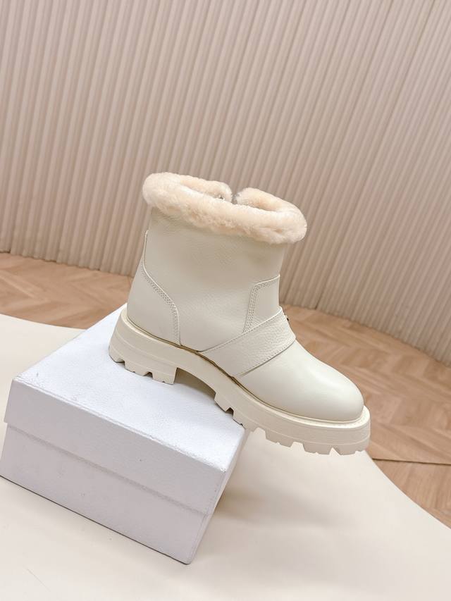 高版本 ,Dior 迪奥 一脚蹬时尚羊毛短靴马丁靴 冬季时尚保暖 全牛皮面 加厚羊羔毛
