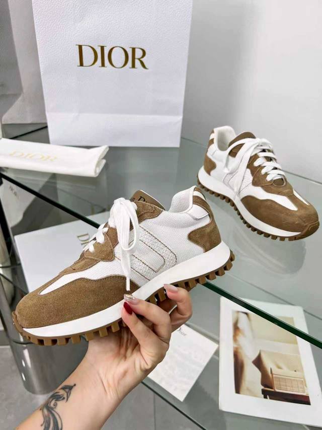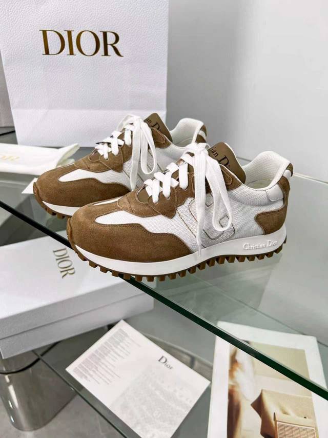 / 2025新款C'est Dior运动鞋,左C右D凑成迪奥的Cd标识,低调奢华,轻便舒适,厚底增高 白色网眼针织物搭配进口牛皮和进口绒面牛皮革,Tpu大底,码数3