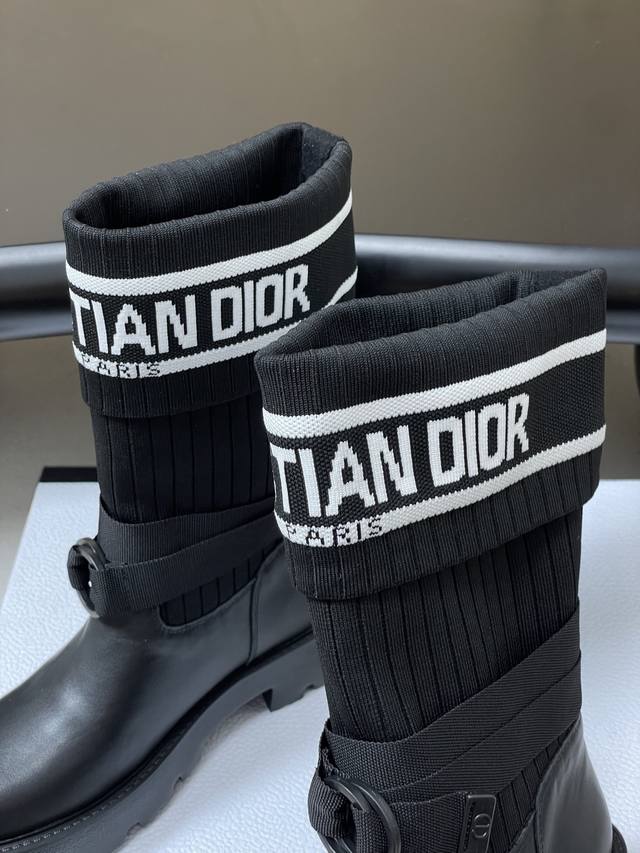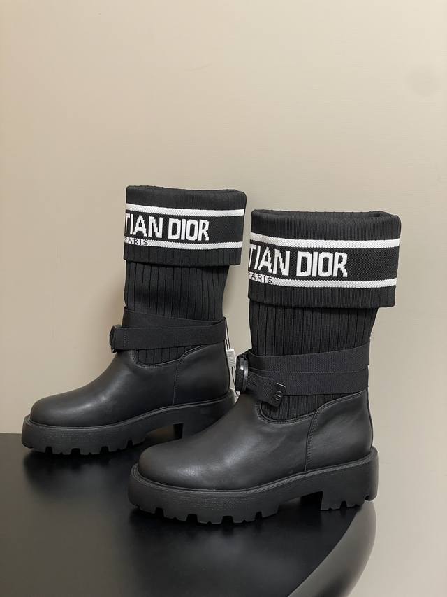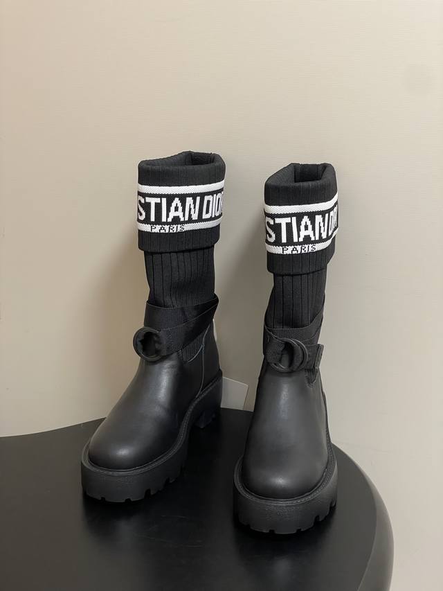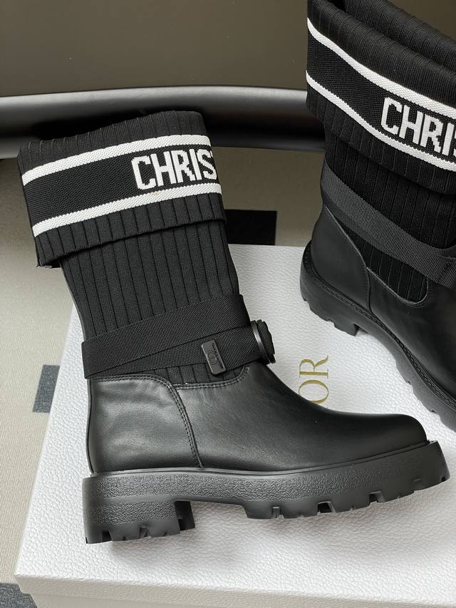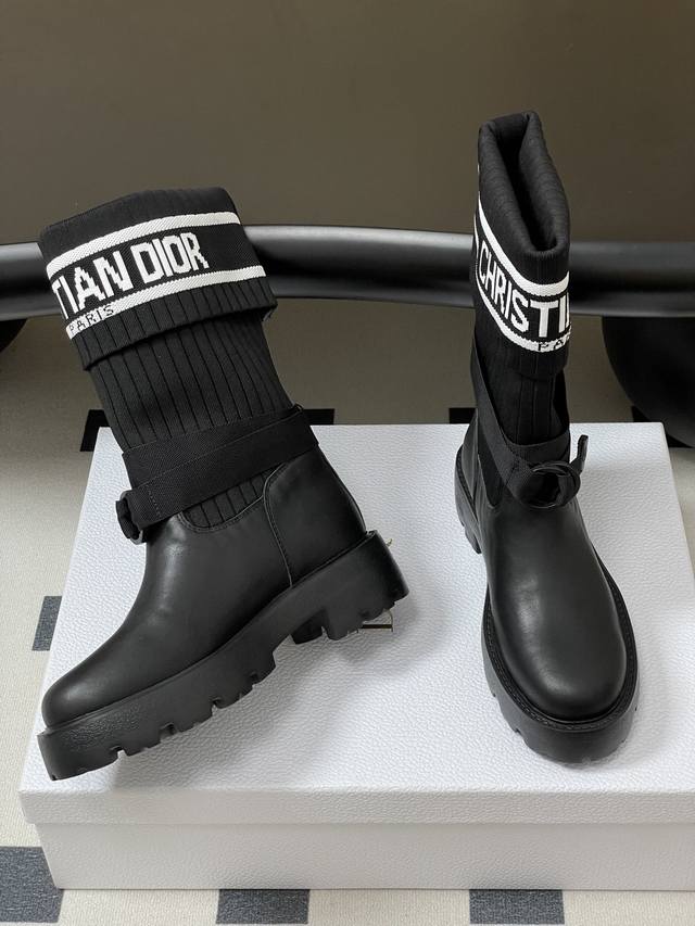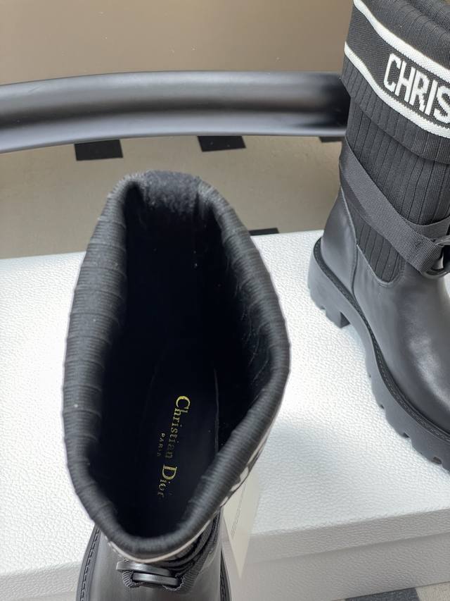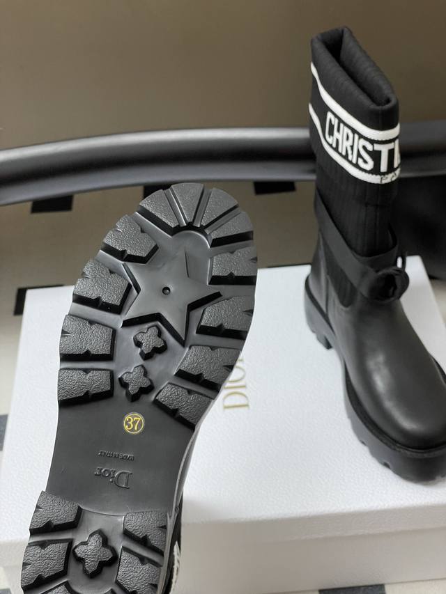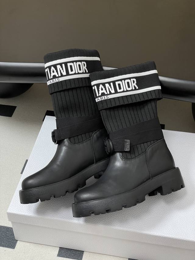 2025秋冬新款Dior迪奥D-Major 及踝靴 爆火Cd字母电绣针织面料短靴厚底靴 DDD 这款 D-Major 及踝靴醒目吸睛,彰显个性。黑色牛皮革鞋面搭配同色调科技针织面料袜筒,饰以灵感源自Book Tote 手袋的白色 Christian Dior标志条形图案。可调节饰带突显脚踝线条,厚实而轻盈的凹口鞋底更显精致。 DDD 鞋面:牛皮 定制针织面料 DDD 鞋底:原版开模Eva橡胶大底 DDD 码数:35-39 40.41定做不退换 DDD